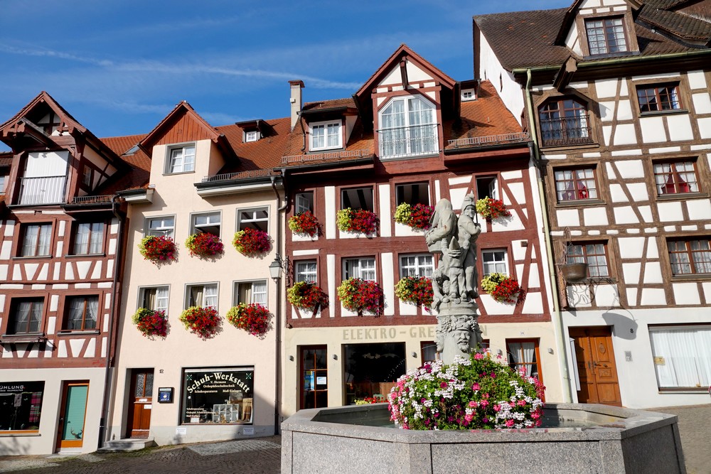Encore quelques coups de pédale, et nous arrivons à Überlingen, une petite ville appréciée des visiteurs pour son agréable bord de lac. Nous parcourons également la vieille ville, mentionnée pour la première fois en 770 sous le nom de Iburinga, une balade agréable où nous croisons moins de monde qu’à Meersburg, la plupart des gens ayant opté pour la plage !