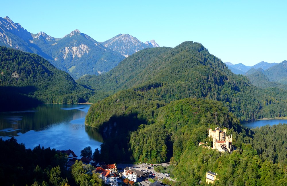Nous poursuivons la grimpette, rapidement le chemin bifurque vers le sud et offre des vues époustouflantes sur le château de Hohenschwangau et les montagnes environnantes.