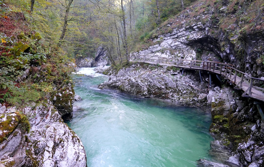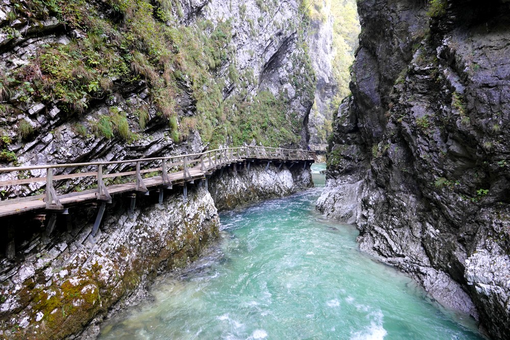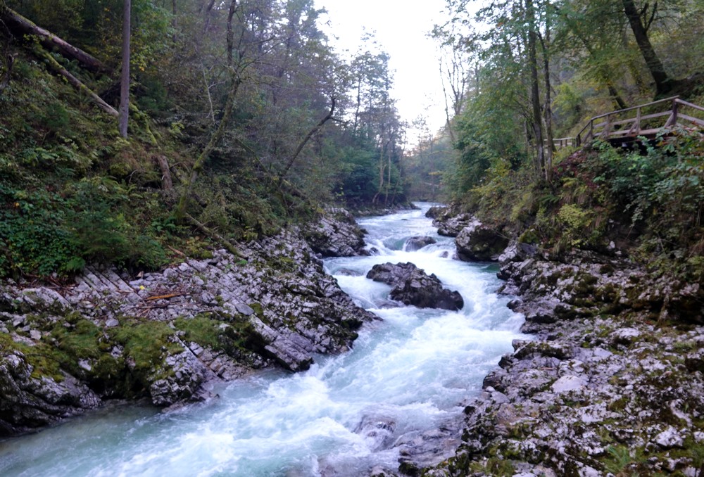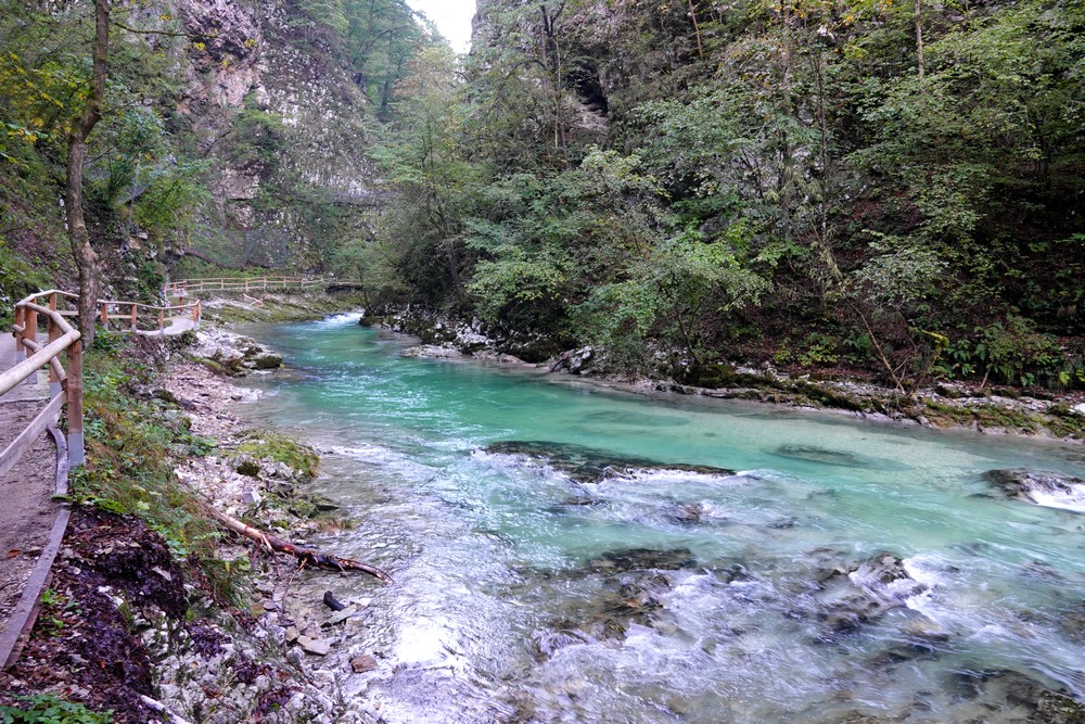 Le cheminement, long de 1.6km, est très bien conçu et agréable à suivre. On longe la rivière Radovna et ses méandres, au fond d’une gorge profonde de près de 250 mètres. Impressionnant travail de la nature…