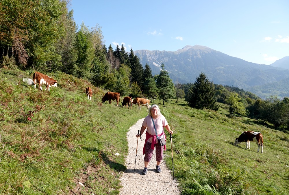 Rassasiés, nous reprenons la marche et cette fois, le sentier traverse un alpage où paissent des vaches – petit moment de solitude pour moi, sous l’œil rigolard de Gérard, quand il faut passer à moins de deux mètres de ces grosses bêtes…