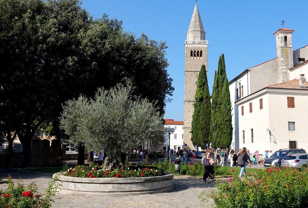 L’arrivée à Koper n’est pas spécialement remarquable, mais le front de mer est agréablement aménagé. Après un moment passé à trainer sur le quai, nous montons dans la vieille ville ; il y a beaucoup de monde dans les rues, des jeunes surtout, preuve du dynamisme de cette grosse cité slovène – plus de 50.000 habitants, ce qui en fait l’une des plus importantes du pays. Comme tous les centres historiques d’Istrie, l’église est posée au sommet d’une butte, et les bâtiments s’étagent jusqu’à la mer, le long de ruelles étroites. Autre particularité locale : Koper est bilingue – italien et slovène – c’est pourquoi la ville est également connu sous le nom de Capodistria…