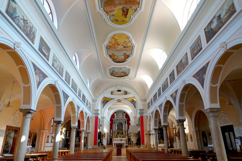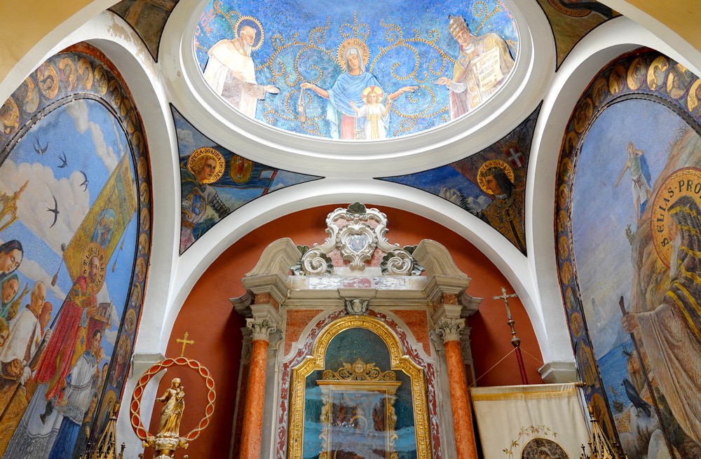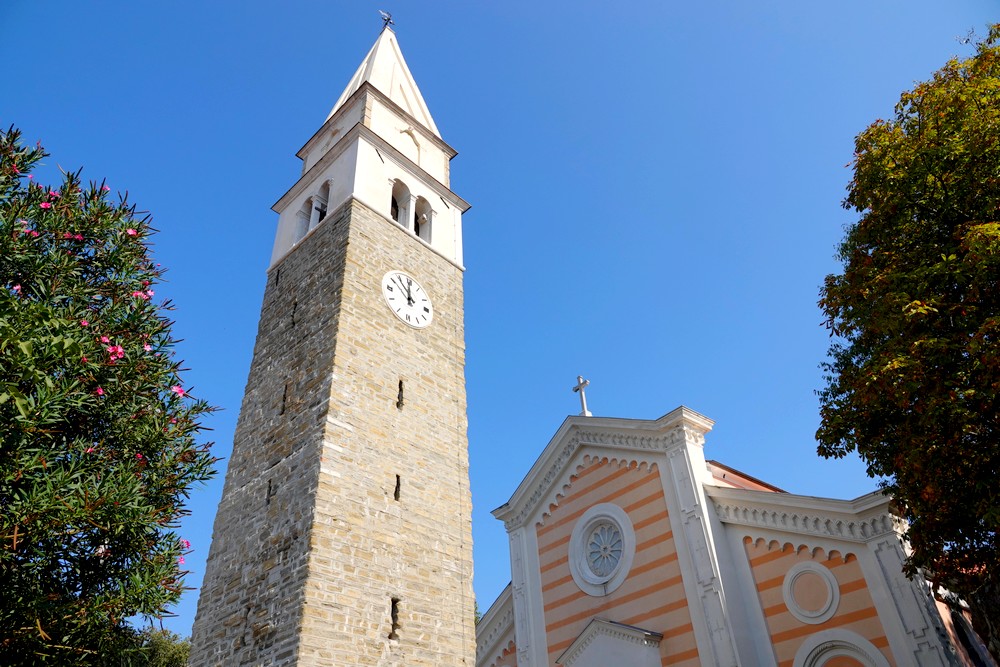 Après une descente bien raide sur des pavés un peu cahotants, nous parvenons à l’église Saint Georges, édifiée au XIIe siècle sur un piton rocheux, dont le clocher, semblable aux campaniles vénitiens, est visible à des kilomètres à la ronde. Ici aussi, les terrasses offrent un beau panorama sur les alentours !