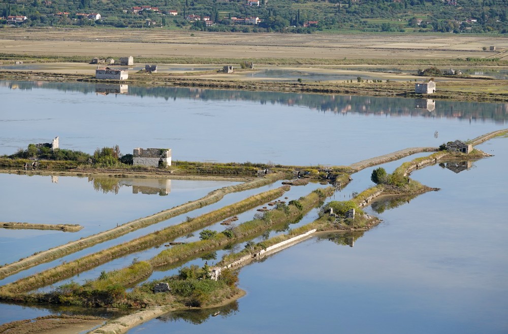 En prenant de l’altitude, nous bénéficions d’une superbe vue sur les marais salants et les maisons de sauniers abandonnées, et désormais en ruine. La récolte du sel s’étant arrêtée en 1960, le site a maintenant été transformé en réserve naturelle où de nombreux oiseaux ont trouvé refuge.