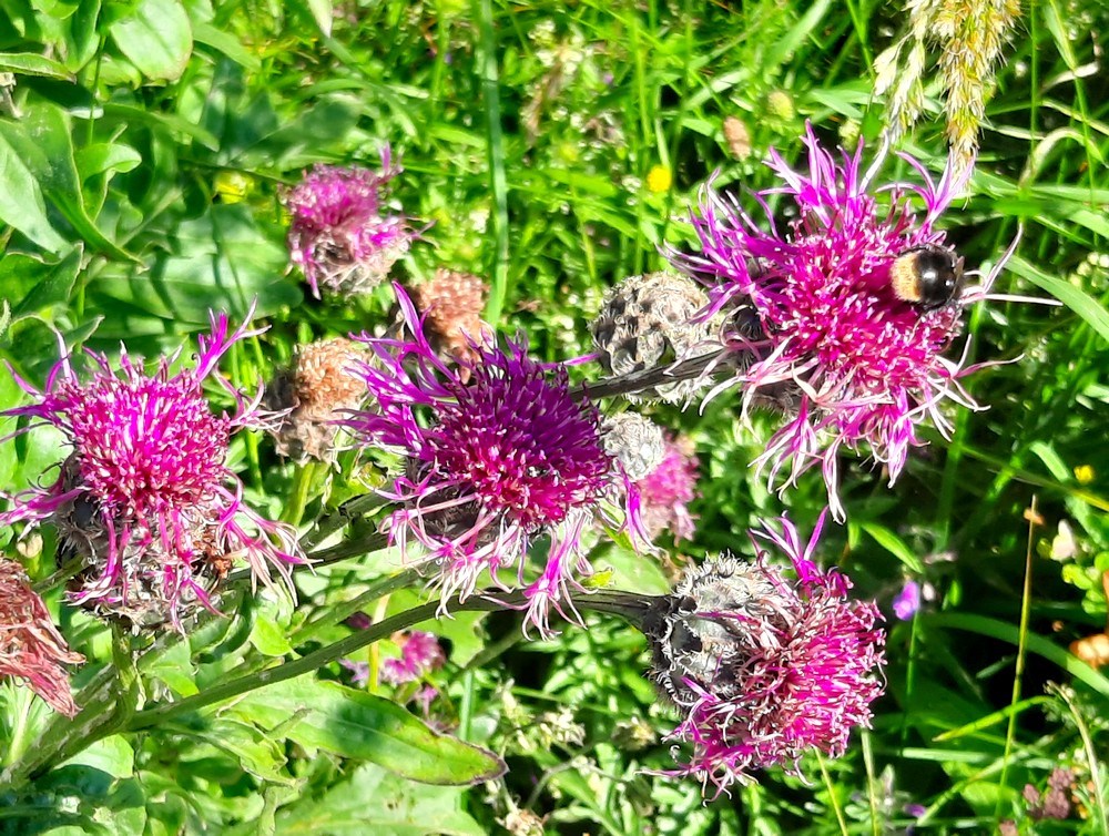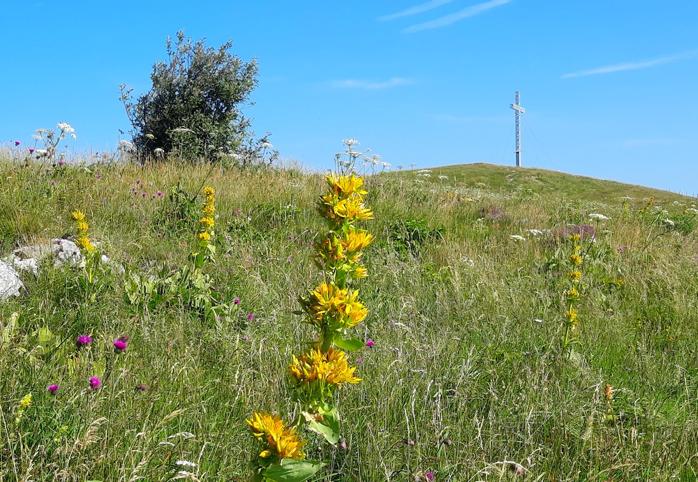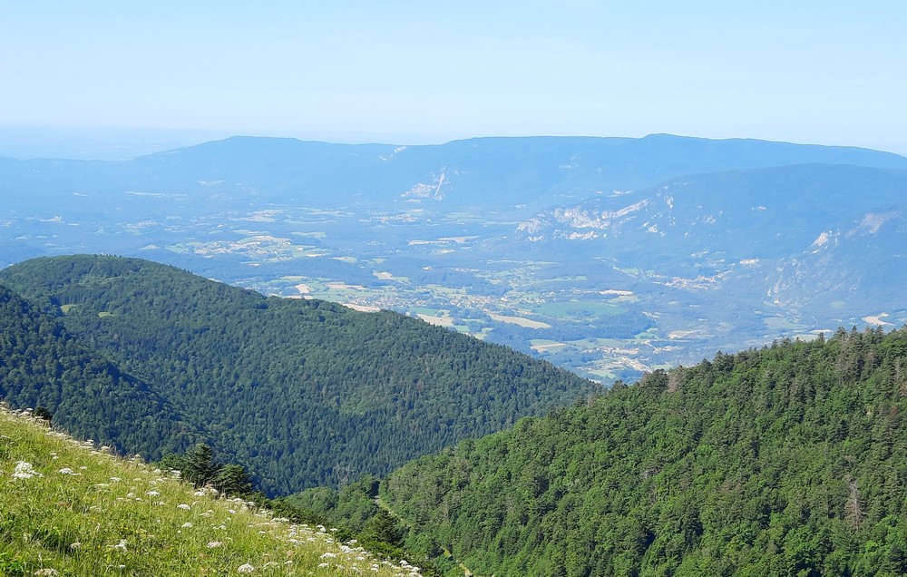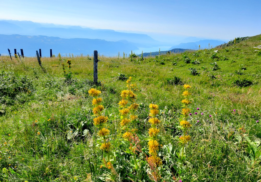 Partis à 7h de Champagne, nous parvenons au sommet vers 9h30, l’heure idéale pour profiter du site en toute quiétude. Malgré une légère brume, on est ravis de distinguer aussi bien le lac du Bourget, et plus loin, le Mont Blanc. En attendant nos amis Pascale et Jacky qui doivent nous rejoindre plus tard, nous nous baladons à pied dans les environs, dans une végétation luxuriante à souhait, les nombreuses pluies des jours précédents ayant été particulièrement favorables à la flore. Bref, une sortie certes sportive, mais également riche en émotions visuelles et olfactives !