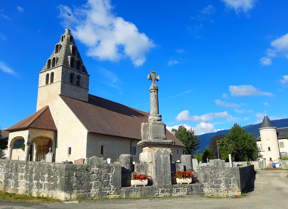 En quelques coups de pédale, nous rejoignons Vieu, un petit village doté d’une belle église en tuf construite sur les ruines d’un temple romain. D’ailleurs, de nombreux vestiges de l’époque romaine ont été découverts dans les environs, preuve que le Valromey est habité depuis fort longtemps.