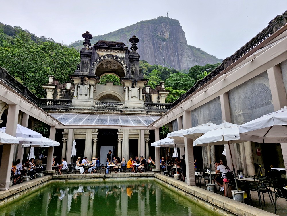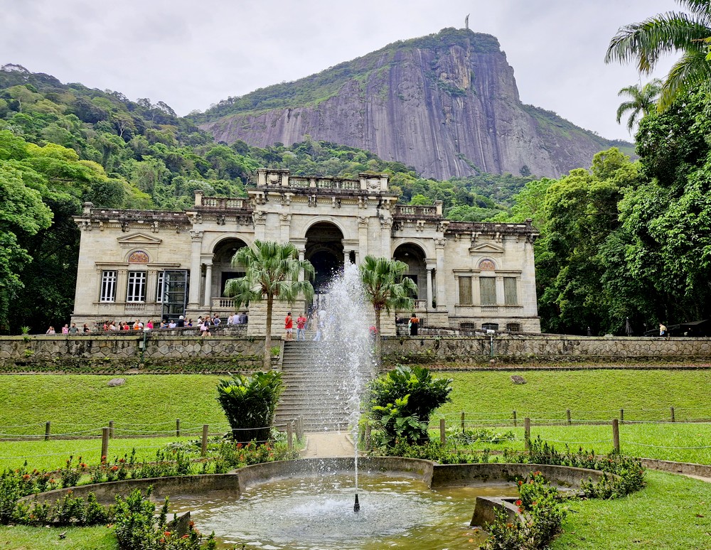 Vendredi matin, nous commençons par découvrir un parc que nous ne connaissons pas ! Situé dans le quartier du Jardim Botânico, au pied du Corcovado, ce terrain était autrefois la résidence de l’industriel Henrique Lage et de son épouse, la chanteuse Gabriella Besanzoni. Il est prisé pour son ancien manoir qui abrite aujourd’hui un café. Les jardins ont dû, en leur temps, être magnifiques mais actuellement, on ne peut que déplorer le manque d’entretien… On se contente donc d’observer une belle colonie de singes qui sautent d’un arbre à l’autre, ignorants les humains qui, à quelques pas, enchainent les selfies devant le très photogénique bassin du manoir !