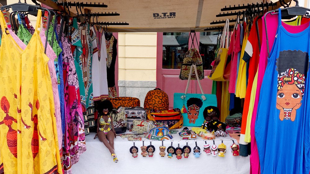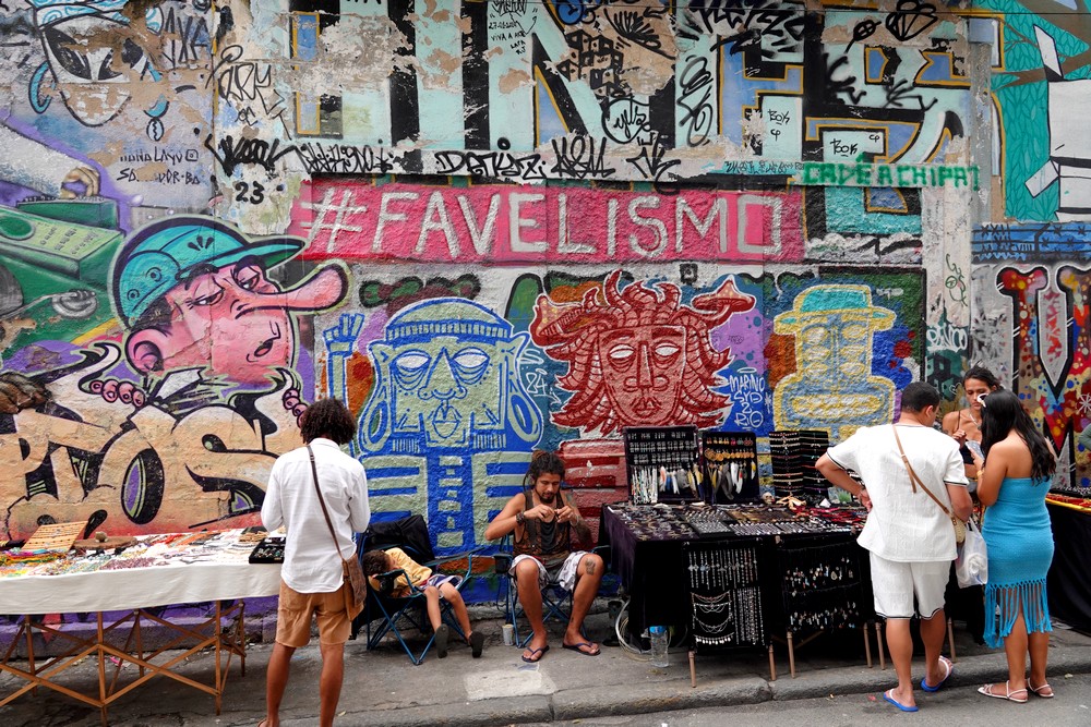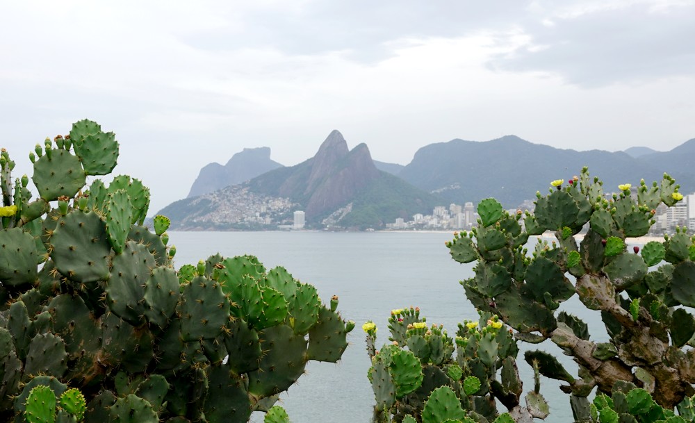 Le soleil n’étant pas au rendez-vous, c’est sous une petite pluie fine que nous nous baladons le long de la plage d’Ipanema. Alors que nous l’avions toujours vue envahie de parasols multicolores, le mauvais temps a eu raison des baigneurs, et il y a peu d’amateurs sur le sable. Qu’importe, la balade est toujours agréable, et en se rapprochant de la Pedra do Arpoador, une péninsule rocheuse, on croise de nombreux stands d’objets artisanaux…