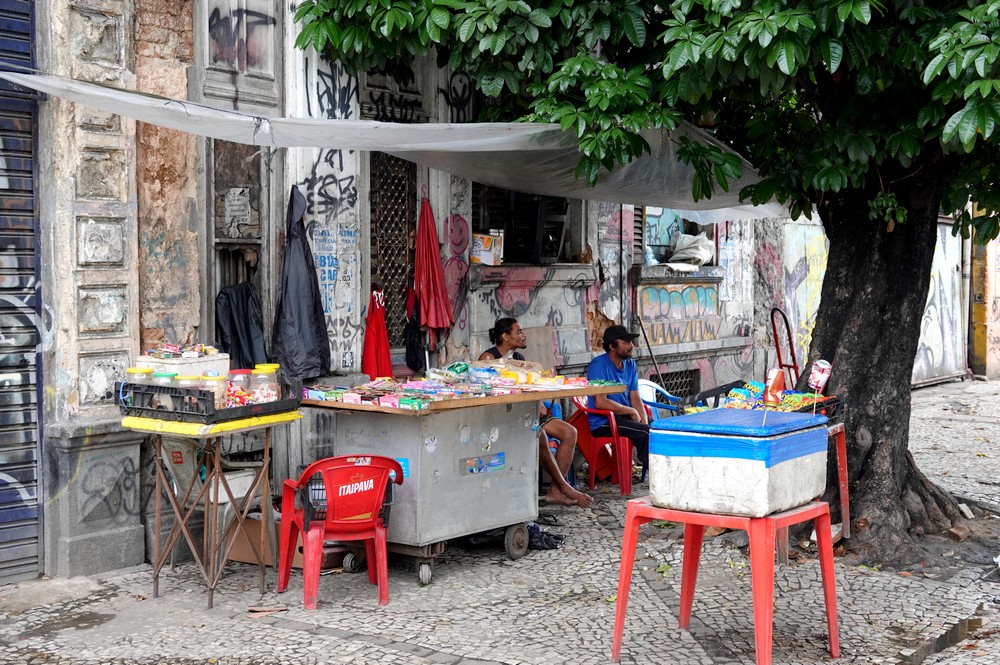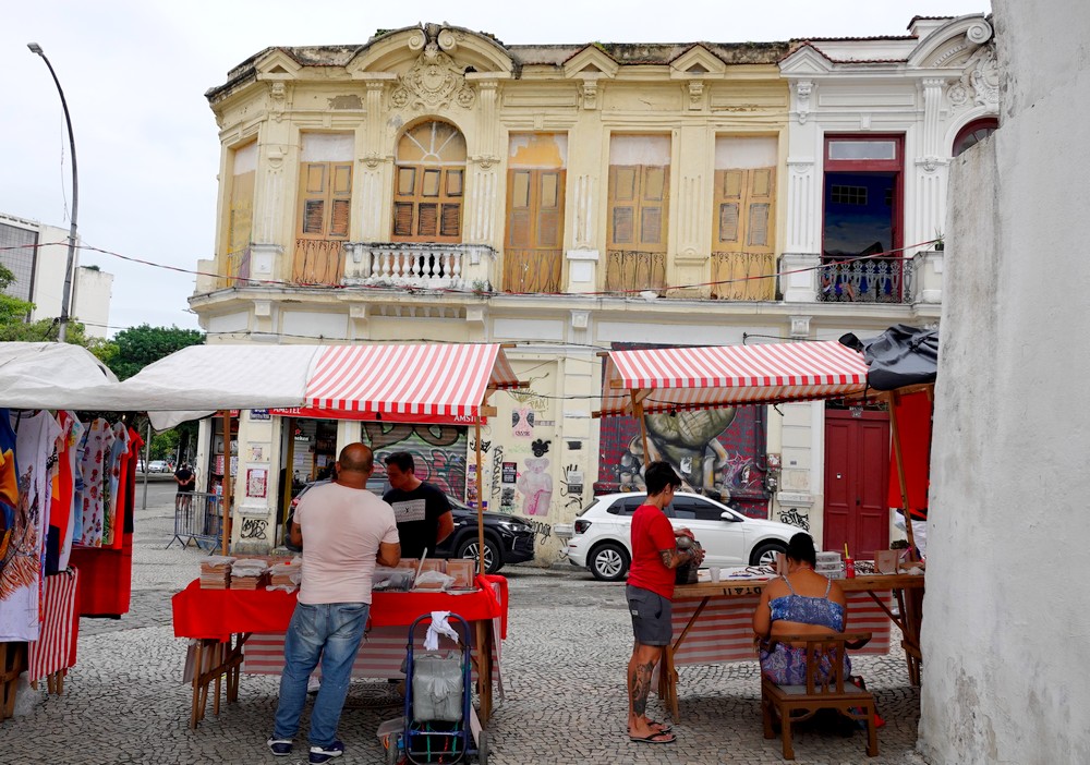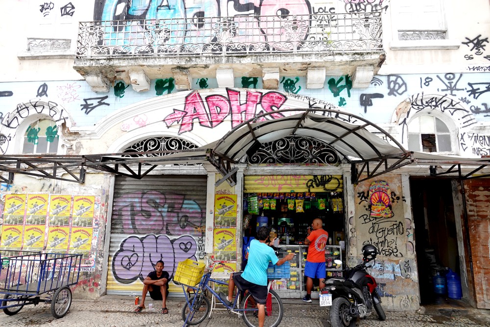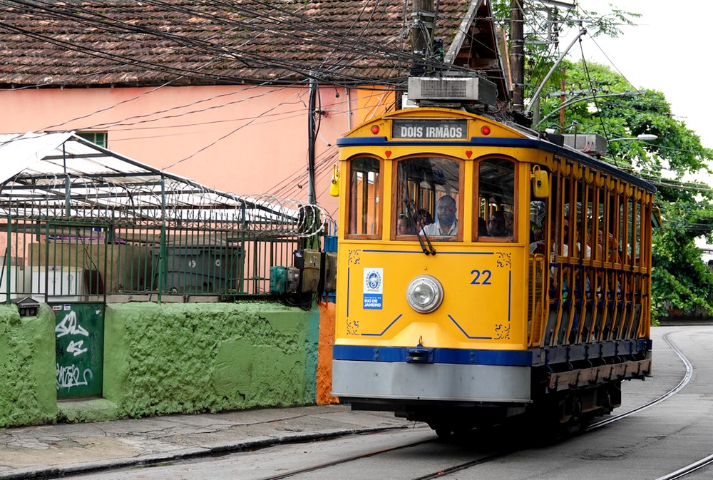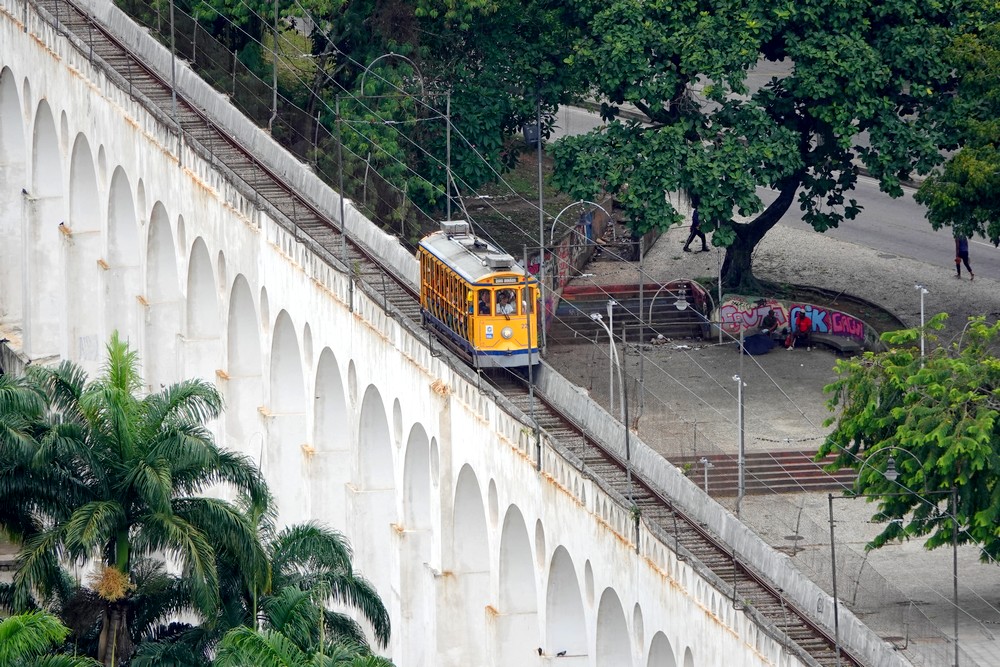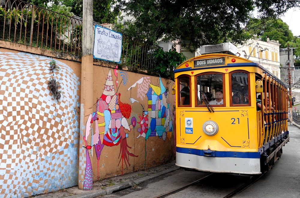 D’un coup de Uber, nous montons en quelques minutes dans le quartier de Santa Teresa, particulièrement apprécié pour son ambiance bohème et ses bars accueillants. Comme il est trop tôt pour boire quoi que ce soit, nous nous baladons vers le Largo dos Guimarães et le Largo do Curvelo. Ici, l’attraction majeure est le Bonde, autrement dit le tram jaune bringuebalant qui relie le quartier au Centro. Mis en service en 1875, c’est l’un des plus vieux du monde, et à l’origine, c’étaient des chevaux qui tiraient les wagons…