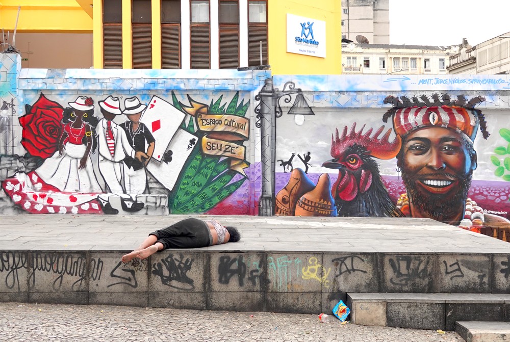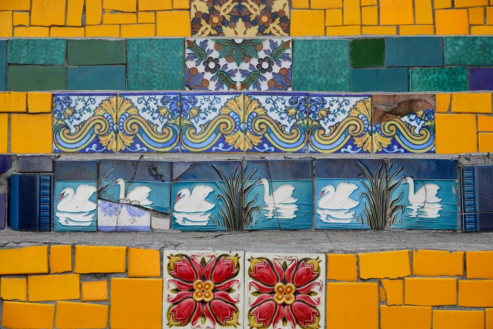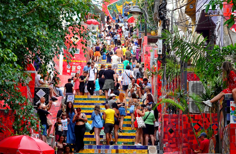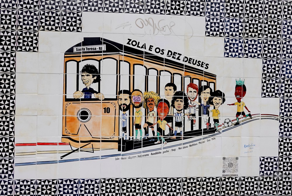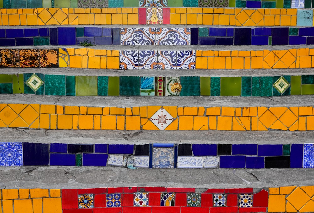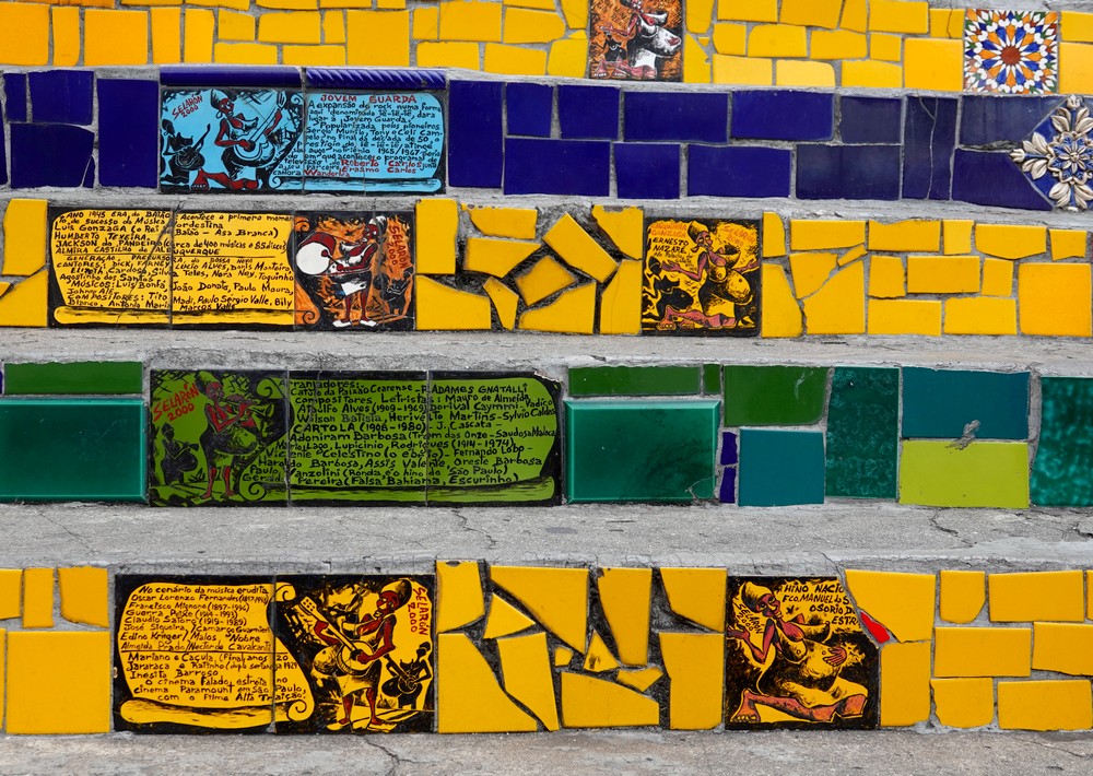 Nous redescendons ensuite par de petites rues et rejoignons le célèbre escalier Selarón qui relie Santa Teresa à Lapa. Œuvre de l’artiste d’origine chilienne Jorge Selarón (1947-2013), celui-ci a la particularité d’être orné, sur toute sa longueur, de plus de 2.000 carreaux de faïence provenant d’une soixantaine de pays différents. Très beau… mais envahi de monde le samedi en début d’après-midi !