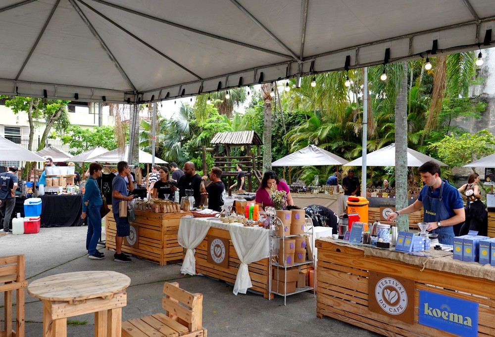 Nous nous dirigeons ensuite vers le Parque das Ruínas qui était fermé lors de notre séjour précédent. Ô surprise, il s’y tient un Festival du Café, et de nombreux stands proposent diverses dégustations. On en profite pour déjeuner et tester un café local et même une bière IPA aromatisée au café. Surprenant mais tout à fait au goût de Gérard !