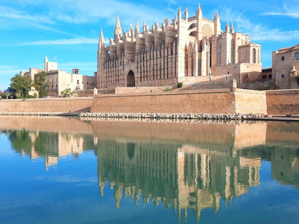 Après un jour et deux nuits de navigation, nous accostons à Palma de Majorque le jeudi 24 octobre. Débarqués quasiment les premiers, nous sautons dans un bus urbain, direction le centre historique où nous arrivons vers 9h20. Efficace ! Nous commençons par faire le tour du Parc de la Mar qui offre de superbes vues sur la cathédrale et le Palais royal de l’Almudaina.