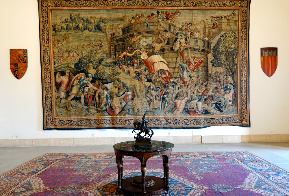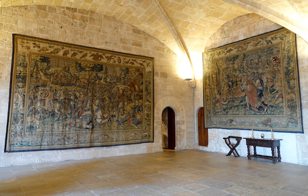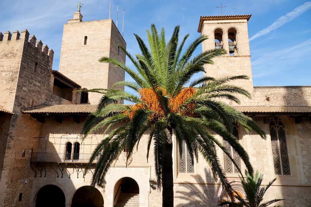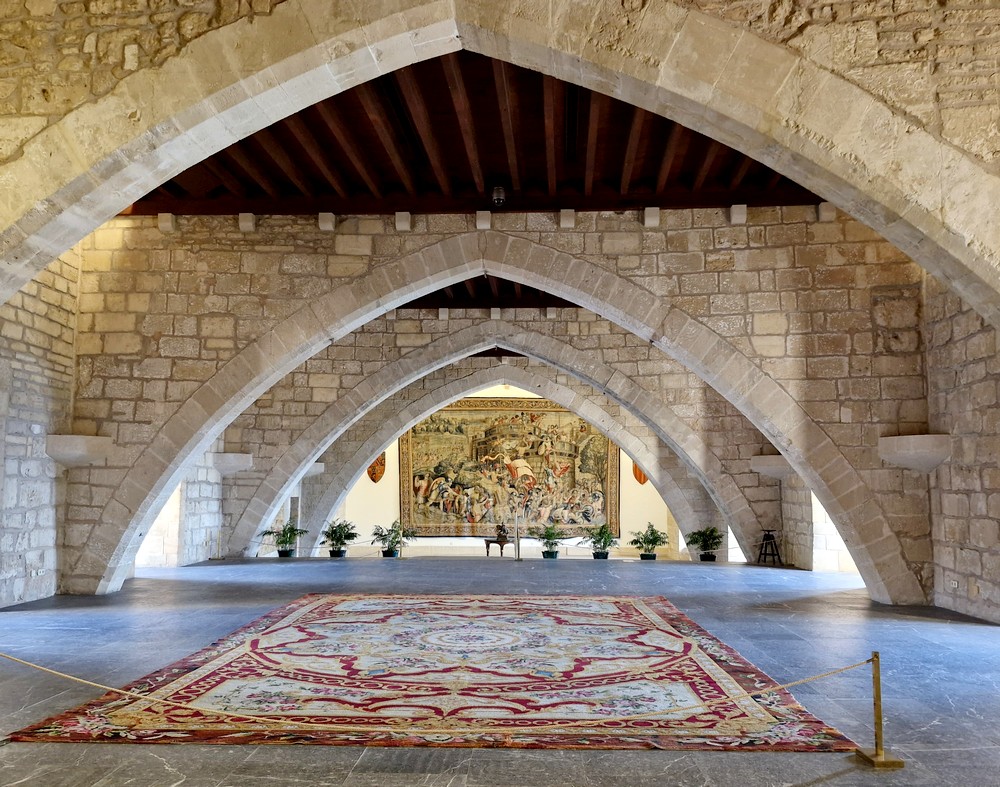 Nous visitons ensuite le Palais royal de l’Almudaina qui fait face à la cathédrale. Le château actuel est le résultat de la transformation de l’alcazar musulman dont la construction a débuté en 1281. Le monument consiste en une grande tour rectangulaire, qui abrite le palais du Roi, le palais de la Reine, une salle appelée Tinell, la chapelle royale et les cours intérieures. À l’intérieur, la décoration est remarquable, particulièrement les diverses tapisseries et le mobilier issus de différents bâtiments historiques. Le monument est aujourd’hui utilisé par le Roi en tant que résidence pour les cérémonies officielles tenues l’été.