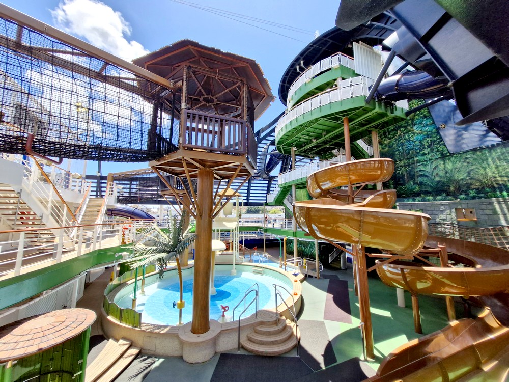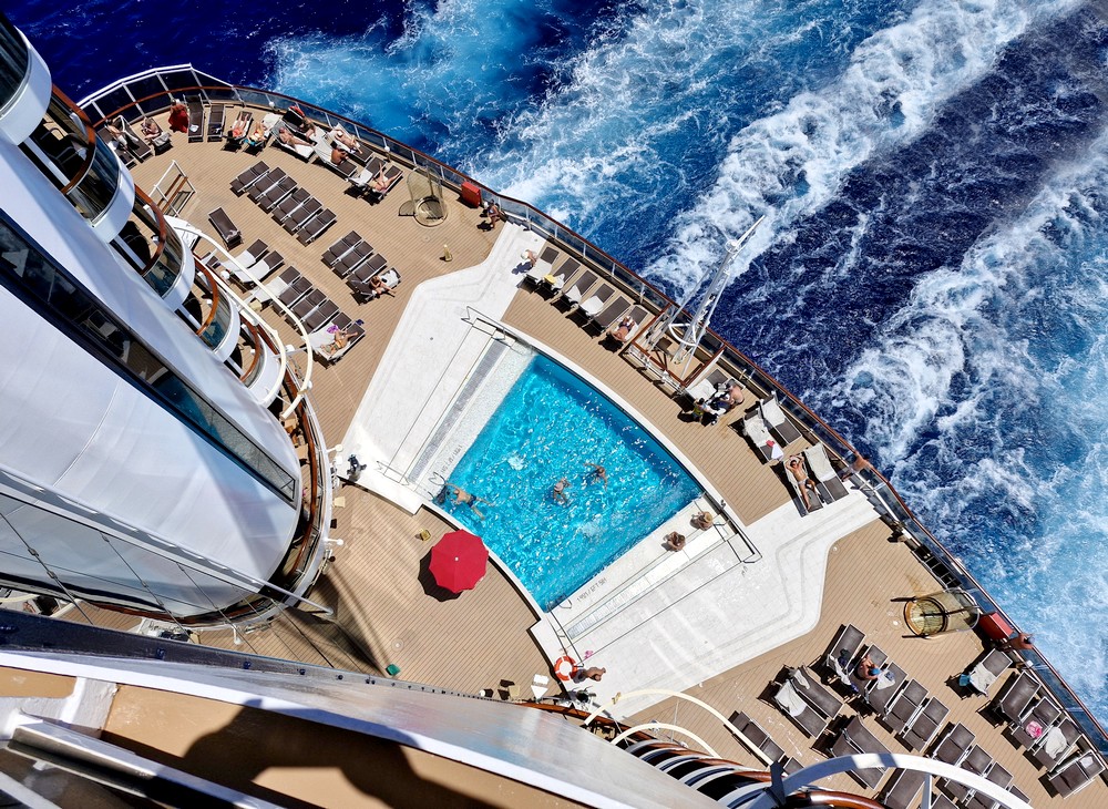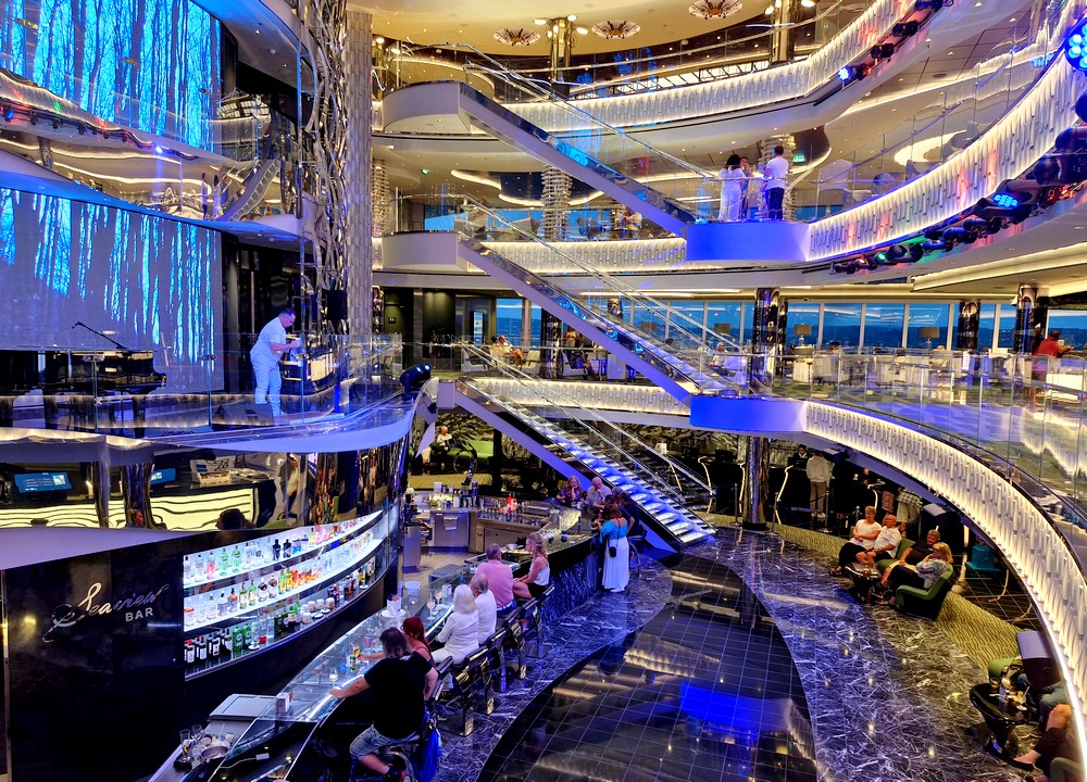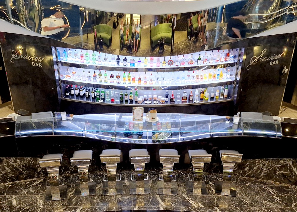 Comme je l’ai mentionné précédemment, nous avons déjà effectué une transatlantique sur ce bateau, en mars 2023. Vu de l’extérieur, le Seaview n’est pas spécialement agréable à l’œil – je le trouve trop grand, voire même un peu difforme – mais pourtant, une fois à bord, on repère rapidement ses atouts : des ponts très larges, de beaux espaces de vie, un atrium assez aérien… Bref, même quand il y a du monde à bord, on ne se bouscule pas les uns les autres, chacun peut trouver un lieu qui lui convient – en ce qui nous concerne, nous avons passé beaucoup de temps au Seaside Lounge, au pont 8 !