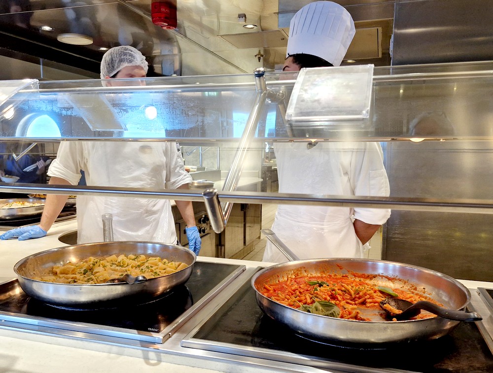 En mer, les repas tiennent une place importante dans la vie des croisiéristes car ils rythment la journée. Si nous déjeunons et dinons presque toujours au restaurant, le buffet demeure lui aussi très appétissant ! Pour le plaisir des yeux, voici quelques-uns des plats que nous avons préférés…