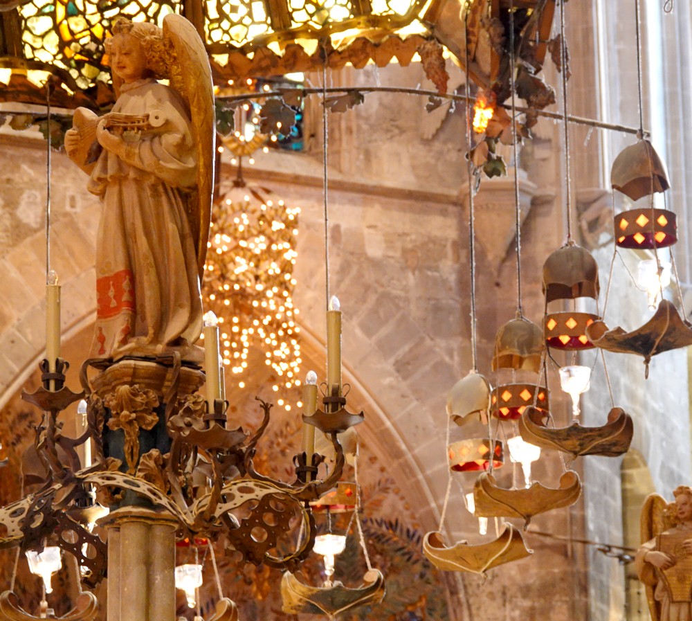 Nous enchainons avec la visite de la cathédrale, deuxième plus grand édifice religieux d’Espagne par sa longueur (109 mètres) après la cathédrale de Séville (132 mètres). Débutée en 1229 sous le règne de Jacque II, la construction s’achève en 1498. De nombreux artistes ont travaillé pour cette cathédrale, en particulier des sculpteurs et des peintres. Joan Matons a réalisé, entre 1704 et 1718, les candélabres géants en argent, et entre 1904 et 1914, Antoni Gaudí reconfigure partiellement le chœur.
