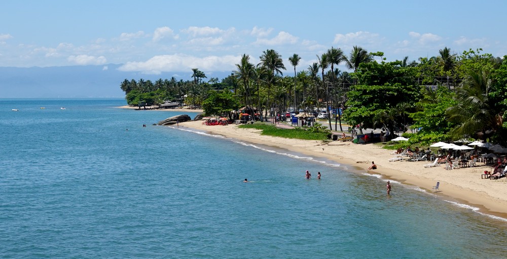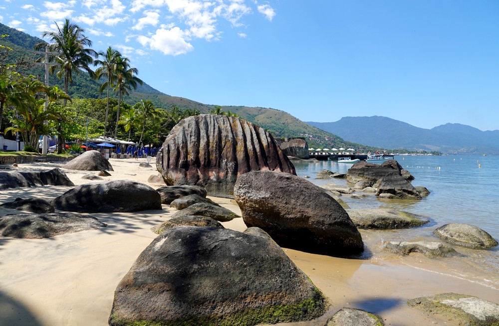Et c’est reparti pour la suite de la balade qui passe d’abord par la plage de Perequê – sûrement l’endroit le plus touristique de l’ile – puis enchaine avec la plage do Itaguaçu – très jolie avec ses gros rochers – et la plage do Itaquanduba. Un peu avant d’arriver à la plage Engenho d’Água, on bifurque vers la route principale : c’en est assez pour aujourd’hui, on continuera cette agréable promenade demain ! Là, on attrape un bus qui nous dépose non loin de notre pousada et d’un supermarché. Fin d’après-midi tranquille dans le jardin de l’hôtel, une caïpirinha à la main !