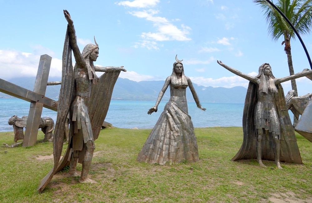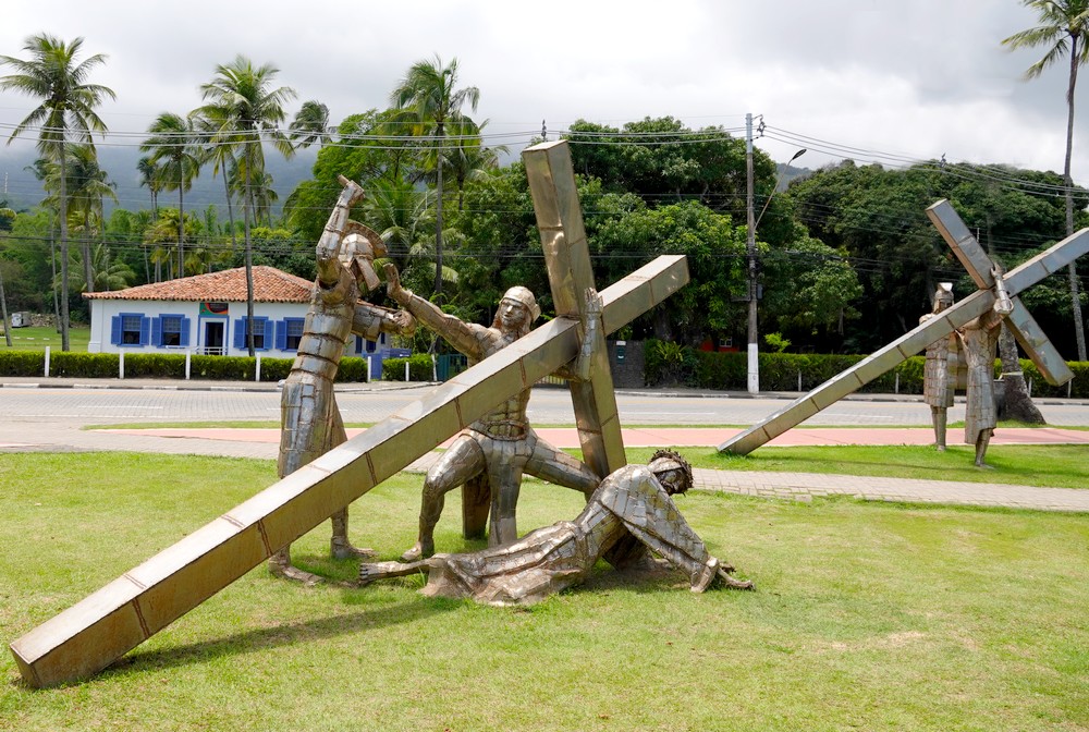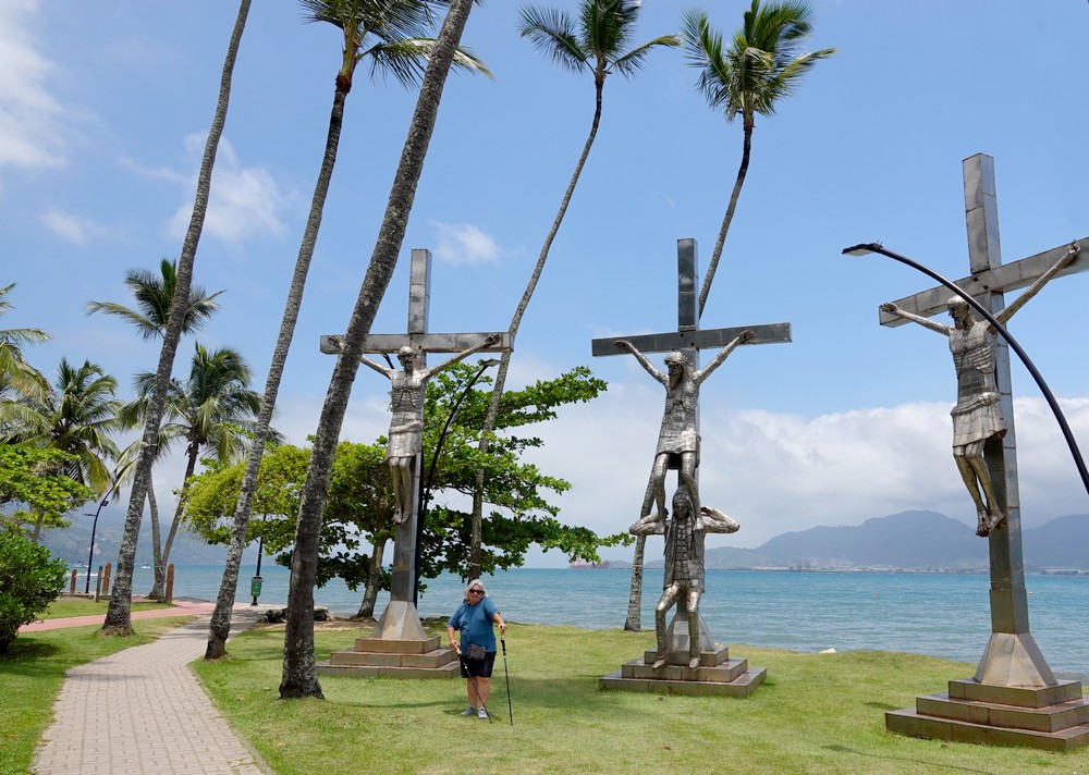 Après une eau de coco dégustée les pieds dans le sable, nous parvenons enfin à la plage Engenho d’Água, au bout de laquelle un curieux Chemin de Croix a été érigé par le sculpteur Gilmar Pinna. Une réalisation imposante et étonnante qui ne laisse pas indifférent…