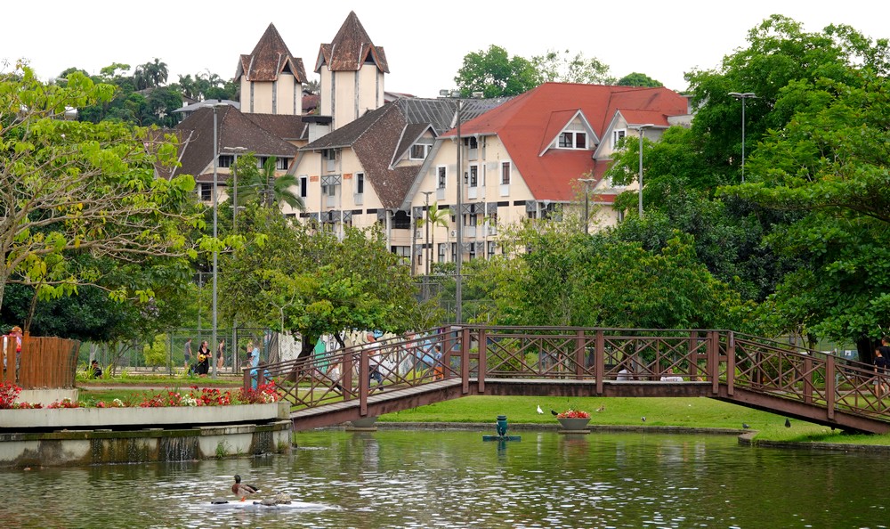 Côté histoire, la ville fut établie en 1850 par le docteur Hermann Bruno Otto Blumenau – un pharmacien et chimiste allemand – qui lui donna son nom. Accompagné de 17 colons, celui-ci débarqua sur le littoral sud du Brésil, à l’embouchure du Ribeiro da Velha. Les terres furent partagées entre les nouveaux arrivants qui construisirent des maisons dans un style à colombage typiquement germanique.