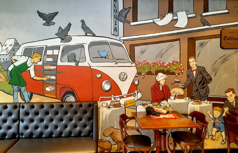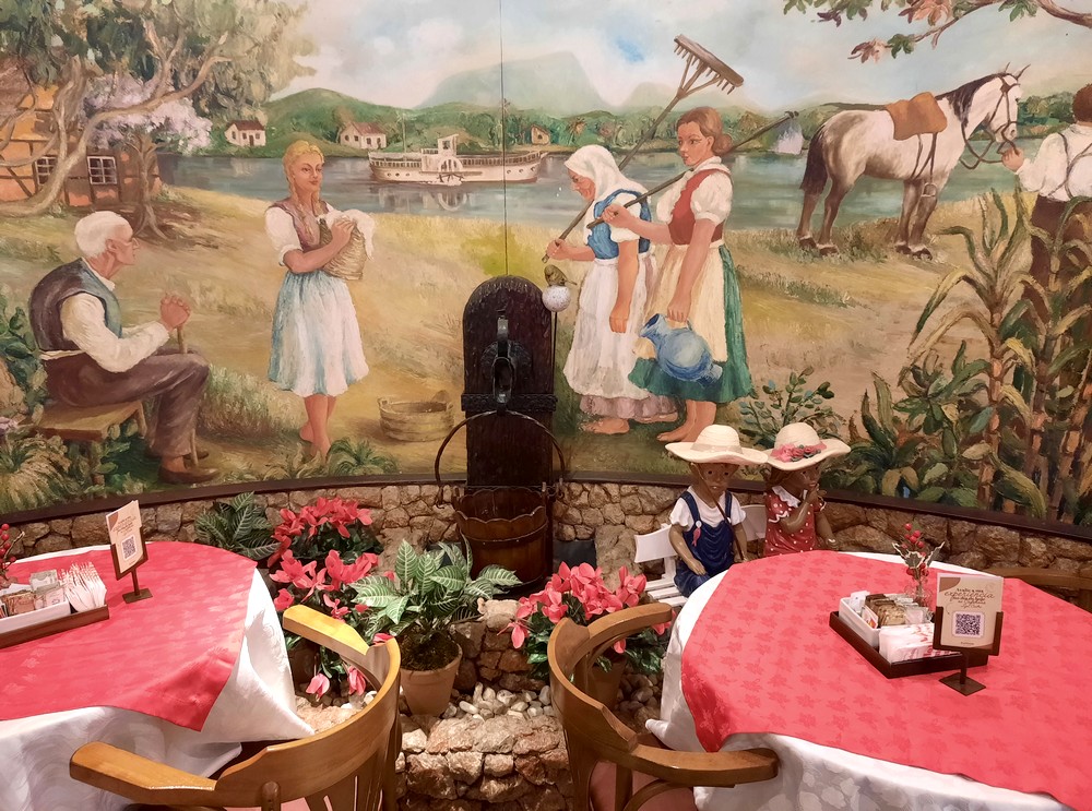 Nous poursuivons par la visite de deux petits musées : le Museu da Família Colonial et le Museu de Hábitos e Costumes. Le premier nous fait découvrir un intérieur ancien – fin du XIXe et début du XXe siècles – appartenant à Victor Gaertner, marchand, ancien consul de Blumenau et neveu d’Hermann Blumenau. Dans le jardin, Edith Gaertner, petite-nièce de Blumenau, a érigé un cimetière pour chat. Le second musée présente vêtements et objets autrefois utilisés par les colons allemands. Deux petites visites très intéressantes à ne pas louper !