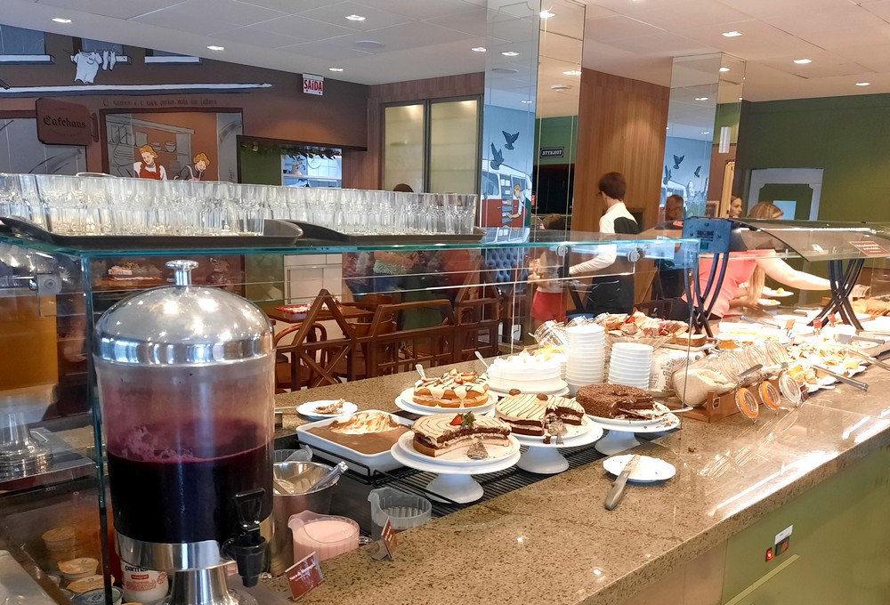 Nous déjeunons à la Choperia Bier Vila qui, comme son nom l’indique, propose une vaste sélection de bière. Côté gastronomie, l’Allemagne est de nouveau à l’honneur avec des plats fleurant bon le jarret de veau, la côte de porc ou la choucroute. Nous optons pour de copieux röstis aux champignons, fromage et bacon, un régal à déguster, même sous les tropiques !