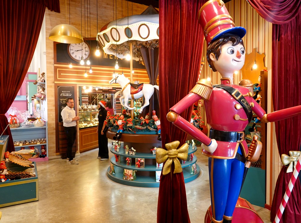 Nous faisons ensuite un tour sur la place Nicoletti, puis dans la Rua Coberta, une allée couverte qui abrite de nombreux restaurants. Çà et là, des boutiques de chocolats et des magasins de déco de Noël attirent notre regard : si au premier abord, on peut trouver l’ensemble assez kitsch, en observant de plus près les produits vendus, on se rend compte qu’ils sont de belle qualité – rien à voir avec les babioles en plastique made in China.