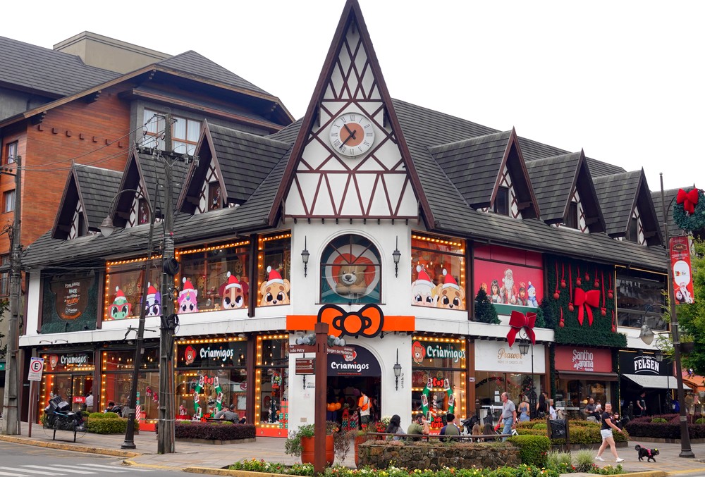 En chemin, il ne faut pas louper la Praça das Etnias où se tient le marché de Noël et la célèbre boutique de produits régionaux, la Casa do Colono. Juste en face, la Rua Torta, bien pentue, nous évoque une piste de ski – je suggère qu’on peigne le sol en blanc pour un meilleur rendu !