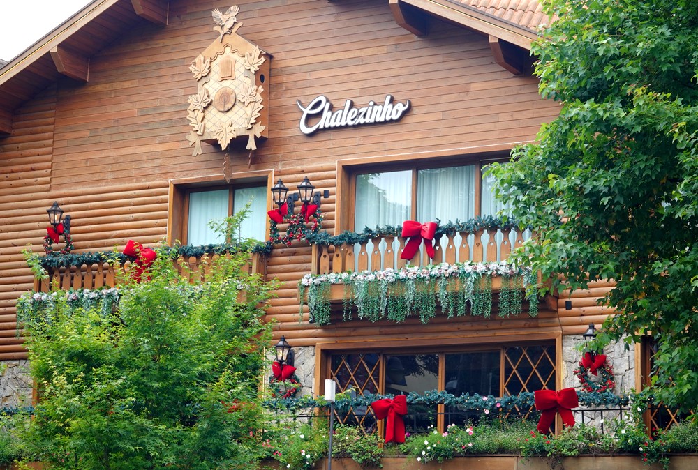 A 8h du matin, nous débarquons donc à Gramado – toujours frais et dispo, la nuit dans le bus a été bonne ! Première surprise dès notre arrivée à la gare routière : les bâtiments qui nous entourent ressemblent à de gros chalets montagnards et les décos de Noël envahissent déjà les rues et les devantures de restaurants. Bref, nous avons l’impression d’avoir été télétransportés dans les Alpes suisses ! D’un rapide coup de taxi, nous rejoignons notre auberge, située Avenidas das Hortênsias – oui, la seconde originalité des lieux sont les hortensias qui poussent partout en bord de route. Décidément, on pourrait se croire en Bavière, en Tarantaise ou dans le canton de Berne… mais certainement pas au Brésil ! Nous nous installons à la Pousada Cantinho na Serra Gaúcha, plutôt sommaire côté confort mais très bien située, à deux pas des attractions de la petite ville.