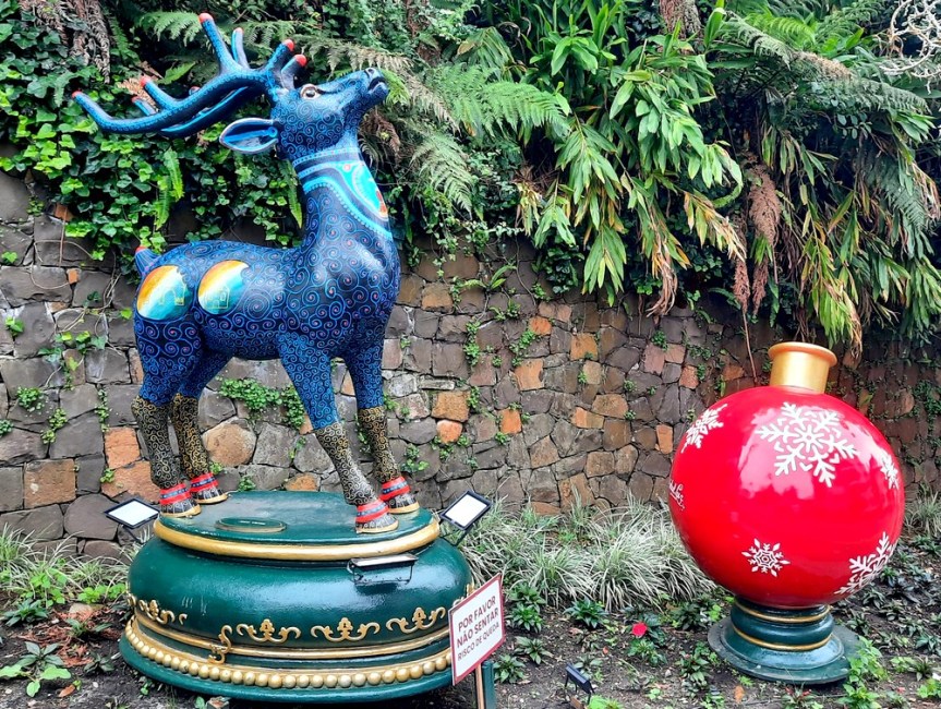 Nous retournons ensuite sur l’Avenida Borges de Medeiros, seconde artère commerçante avec celle des Hortensias. Et c’est reparti pour une débauche de pères Noël, de rennes et autres boules et lutins ! Là encore, on est surpris par la belle qualité des décos ; il faut dire qu’ici, on ne plaisante pas avec Noël, il s’agit d’un véritable festival qui chaque année, entre fin octobre et mi-janvier, attire plus d’un million et demi de visiteurs…