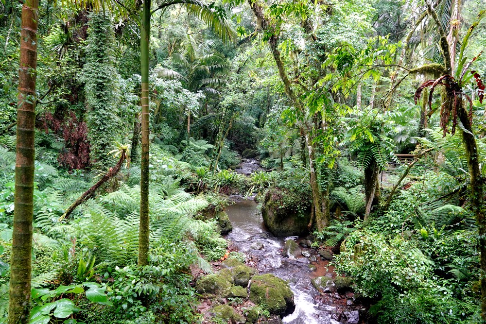 Mardi, bruine au réveil… Cela ne nous décourage pas, et d’un coup de Uber, nous allons au Garden Park Gramado qui se situe 200m plus bas, dans la vallée. Pendant presque deux heures, nous déambulons en suivant différents cheminements très bien aménagés. Evidement, vue la météo, nous sommes vite trempés : ici, la forêt pluviale porte bien son nom ! Néanmoins, cette balade est très agréable car elle nous fait traverser plusieurs écosystèmes de la région. Et nous ne sommes pas embêtés par la foule… puisque nous sommes quasiment seuls ! Seule petite déception : à l’exception d’un beau crapaud, nous n’avons vu ni animaux ni oiseaux…