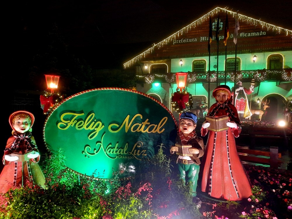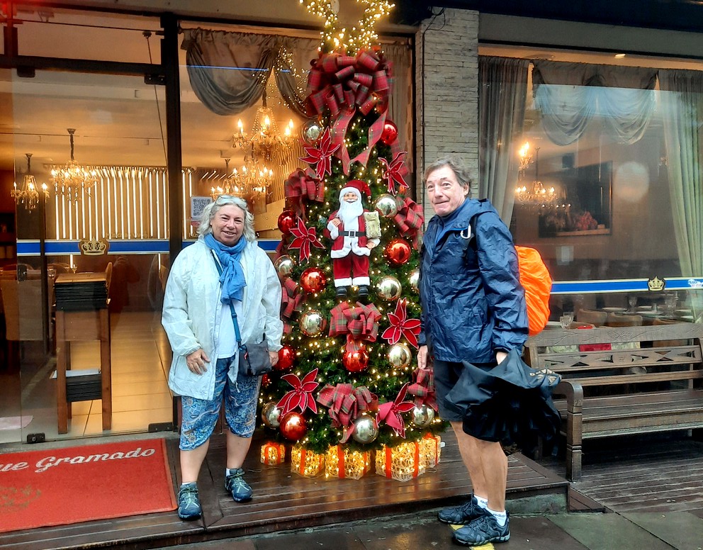 Une fois la nuit tombée, nous refaisons un tour complet de la ville, pour voir les illuminations de Noël… Surprenante Gramado où on s’attendrait presque à glisser sur de la neige tant l’ambiance nous emmène loin du Brésil, vers les stations de montagne suisses… Mais étant presque en été – difficile à croire avec cette brume et cette petite fraicheur, 17° à peine – il n’y aura pas de neige aujourd’hui, même si elle tombe parfois sur la ville, en hiver, c’est-à-dire en juin, juillet et août.