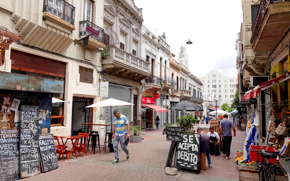 Nous commençons par arpenter la Peatonal Sarandí, la rue piétonne la plus animée du quartier, bordée de quelques maisons anciennes qui ont survécu aux schémas d’urbanisme anarchiques des années 60 et 70. Au niveau de la Plaza de la Constitución, la Cathédrale métropolitaine, de style néoclassique, se remarque à peine ; pourtant, dès que l’on pénètre dans l’édifice, on est surpris par ses proportions – 40m de long toute de même pour 24m de haut.