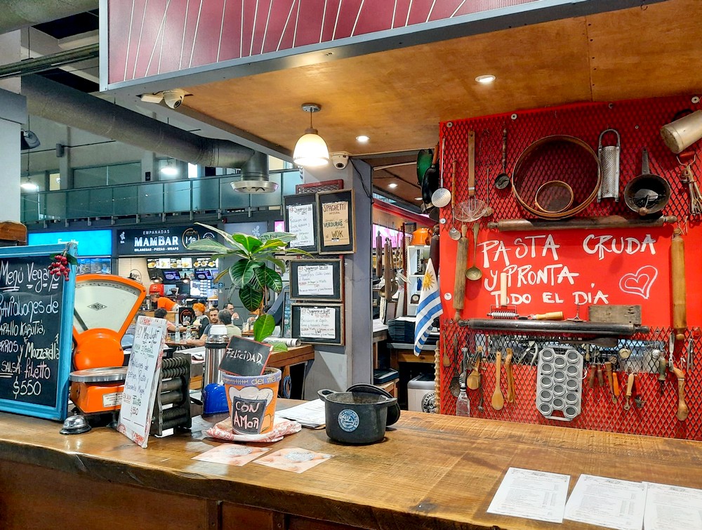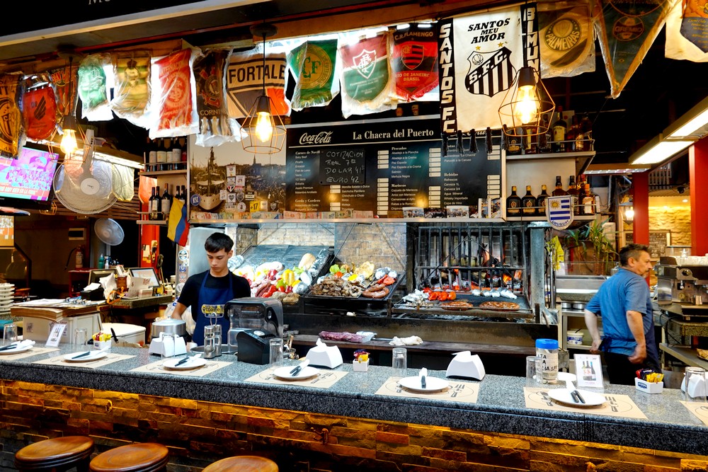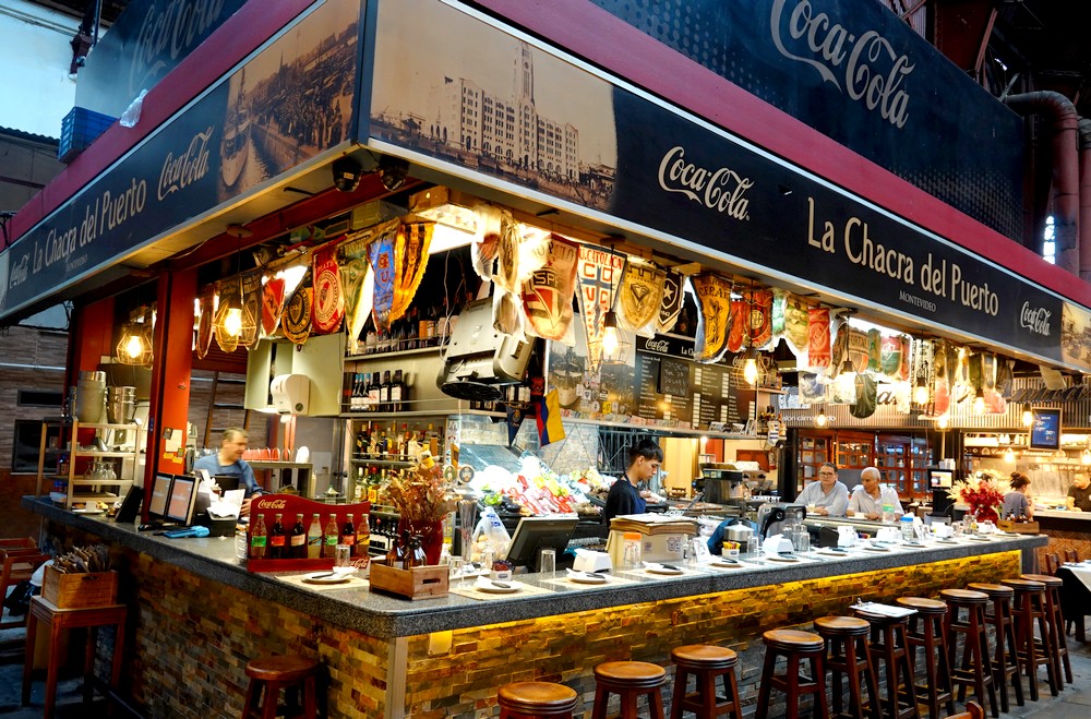 On bifurque ensuite sur la calle Perez Castellano, piétonne également, qui file directement sur le Mercado del Puerto, une halle marchande inaugurée en 1868 pour fournir en fruits, légumes et viande les navires qui arrivaient dans la baie de Montevideo et aussi approvisionner les riches familles qui construisaient à cette époque leurs demeures dans le quartier. Désormais, le marché abrite de nombreux restaurants qui proposent le traditionnel asado, un plat principalement composé de viandes grillées.