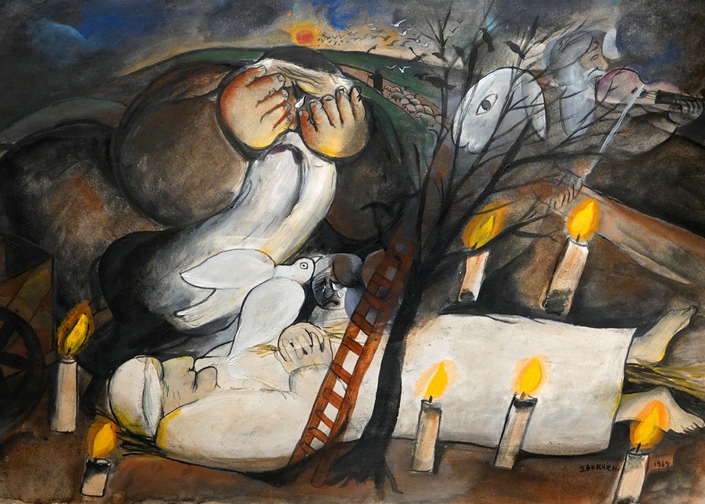 Les autres étages du musée exposent uniquement des œuvres de José Gurvich (1927-1974), peintre uruguayen d’origine lithuanienne. Fuyant les persécutions dont les Juifs sont la cible, la famille Gurvich arrive dans le pays en 1932. Très jeune, José manifeste un amour pour les arts, dessinant constamment pour sa sœur et ses amis. Après avoir un temps travaillé en usine, en 1942, il commence à étudier la peinture à l’École nationale des beaux-arts de Montevideo. Il rencontre alors le célèbre peintre Joaquín Torres García, et intègre son atelier. Dès lors, son travail pictural s’affirme et s’ancre dans le mouvement artistique constructiviste. Gurvich voyage beaucoup en Europe, il passe aussi beaucoup de temps en Israël. Nous avons remarqué que certaines de ses œuvres s’inspiraient tantôt de celles de Torres García, tantôt de celles de Miro ; mais c’est surtout l’influence de Chagall que nous retrouvons dans ses toiles consacrées aux traditions pastorales et religieuses israéliennes et au folklore yiddish – avis très personnel puisque certains sites web notent que Gurvich a beaucoup été inspiré par Goya, Velázquez et Pieter Brueghel…