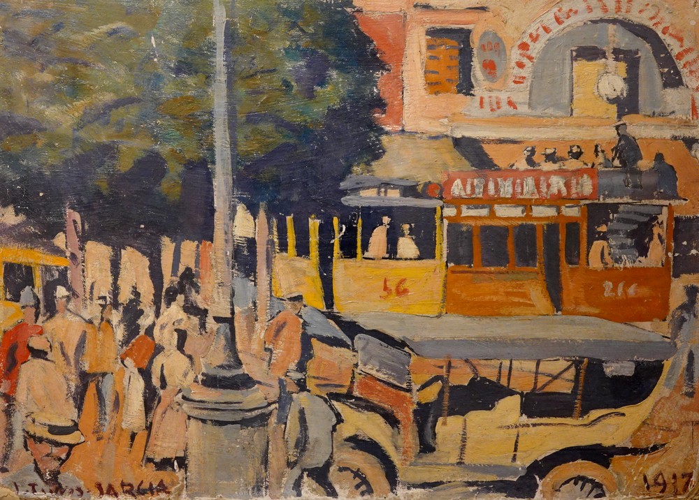 Poursuivant notre découverte des peintres uruguayens, nous visitons ensuite le Museo Torres García, consacré à l’un des plus fameux peintres du pays. D’origine catalan par son père et uruguayen par sa mère, Joaquín Torres García (1874-1949) étudie à l’École Officielle des Beaux-Arts de Barcelone, sa famille ayant émigré en Espagne pour des raisons économiques. Là, il se lie d’amitié avec de nombreux peintres, dont Pablo Picasso, et collabore même avec Antoni Gaudí dans la conception des vitraux de la cathédrale de Palma de Majorque et de ceux de la Sagrada Familia de Barcelone. Plus tard, inspiré par ses enfants, il se lance dans la fabrication de jouets en bois et s’installe à New York en 1921 à la recherche d’un environnement plus moderne pour sa nouvelle proposition picturale et artistique. Après plusieurs séjours en Europe, en 1932 il retourne à Montevideo, accompagné de son épouse et de leurs quatre enfants, Olimpia, Augusto, Ifigenia et Horacio ; dix ans plus tard, il ouvre un Atelier où il donne des cours de peinture à de jeunes artistes cherchant à renouveler la peinture uruguayenne.