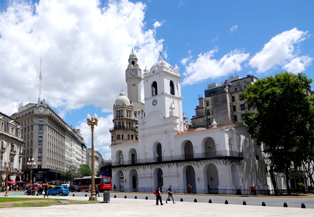 Après le déjeuner, nous partons à pied en direction de la Plaza de Mayo qui concentre quelques-uns des bâtiments les plus emblématiques de la capitale – notamment la Casa Rosada (siège du pouvoir exécutif et donc de la Présidence de la République), le Cabildo (ancienne municipalité qui abrite désormais un musée historique), la cathédrale métropolitaine, l’édifice du Gouvernement de la ville de Buenos Aires et le siège central de la Banque de la Nation argentine. La place est aussi connue par le mouvement des Mères de la place de Mai etdes Grands-mères de la place de Mai, qui a pour but de retrouver et de rendre à leurs familles légitimes tous les enfants et bébés volés lors de la dictature militaire de 1976-1983.