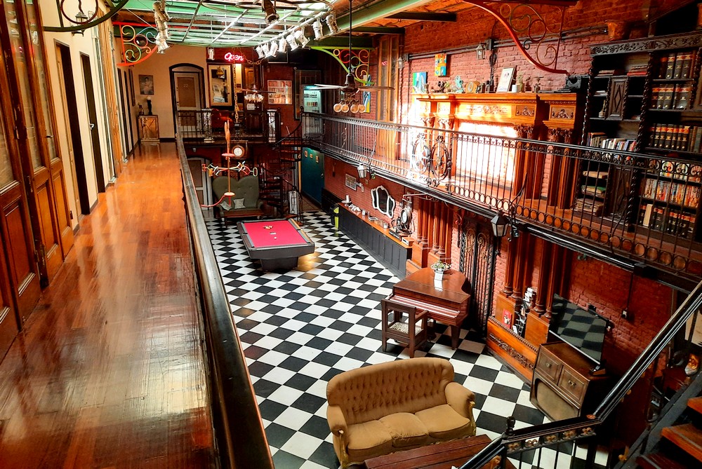 - DEL900 Hotel Boutique, très bien situé (Hipólito Yrigoyen 1208) dans Microcentro, à distance de marche de la Plaza de Mayo, de Puerto Madero et même de San Telmo. Accueil sympathique. Nombreux restos, épiceries et laverie à proximité. Déco du lobby exceptionnelle et atypique. Cuisine commune, wifi. Chambre confortable, avec salle de bain privée, clim et balcon. Attention, il n’y a aucune indication sur la porte d’entrée (bien retenir le numéro de l’adresse, 1208), il y a juste un interphone. Belle volée de marches pour parvenir à l’étage (pas d’ascenseur). 43€ la nuit, uniquement en espèce en US$. Résa via Booking. Un coup de cœur, on recommande !