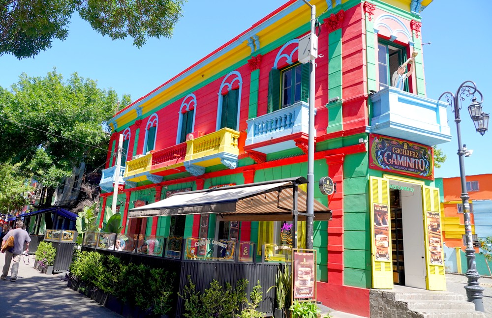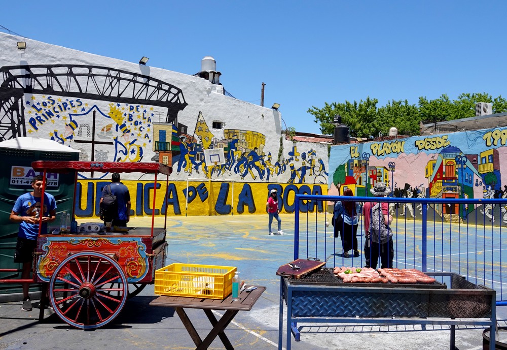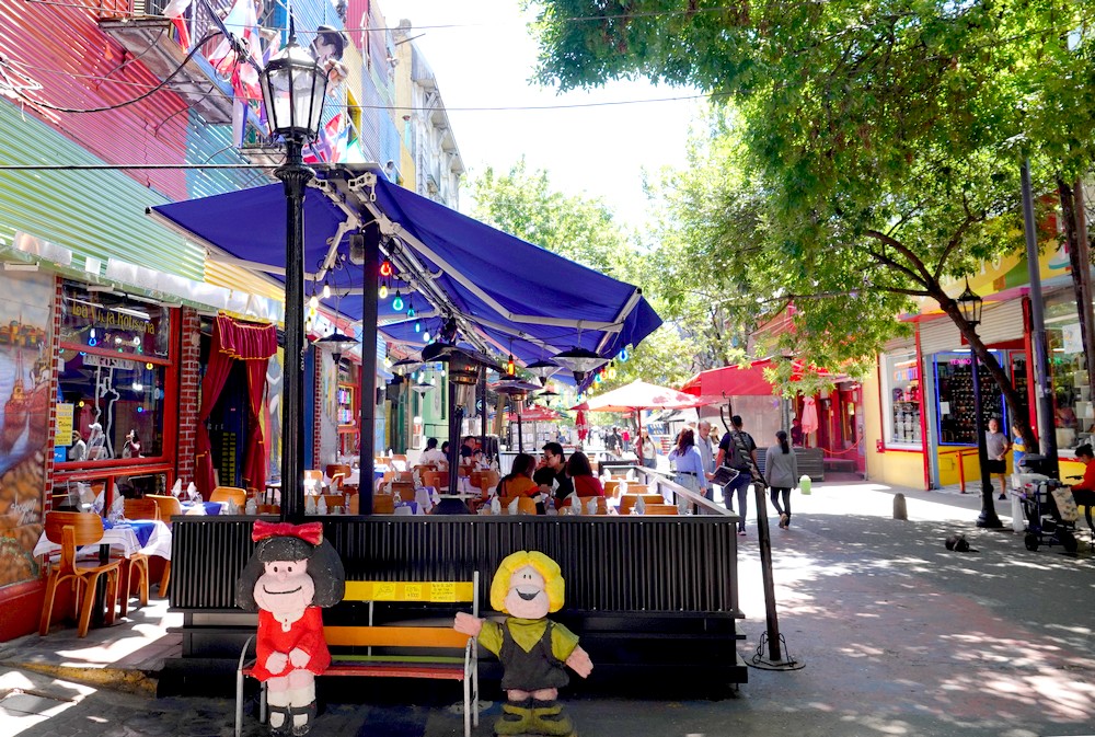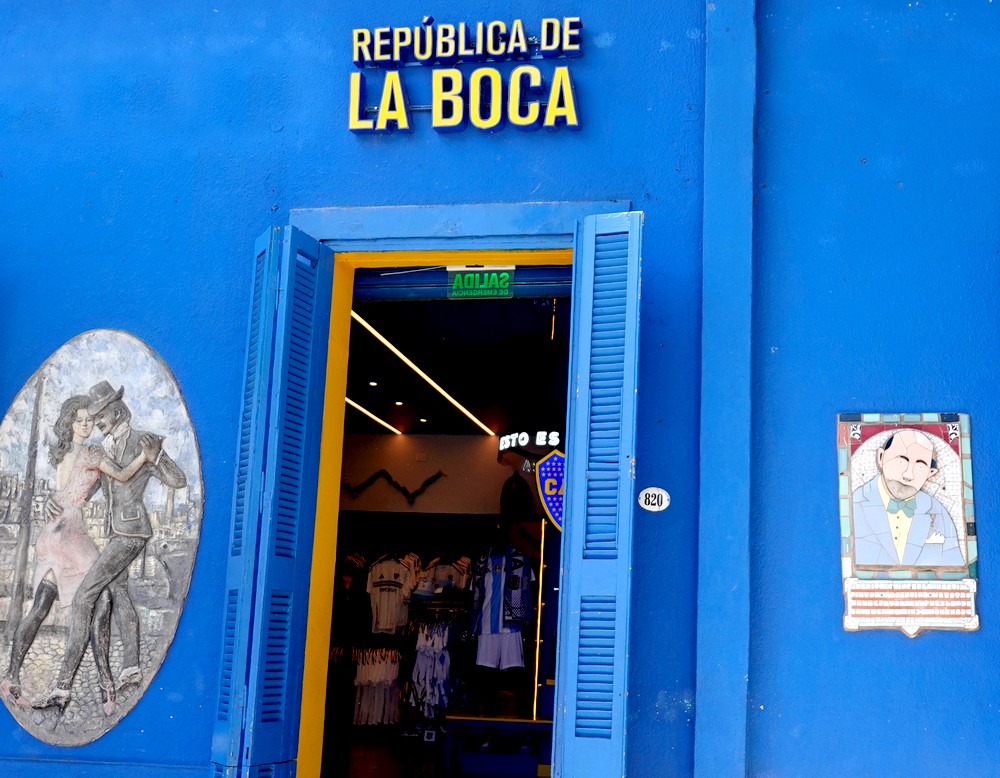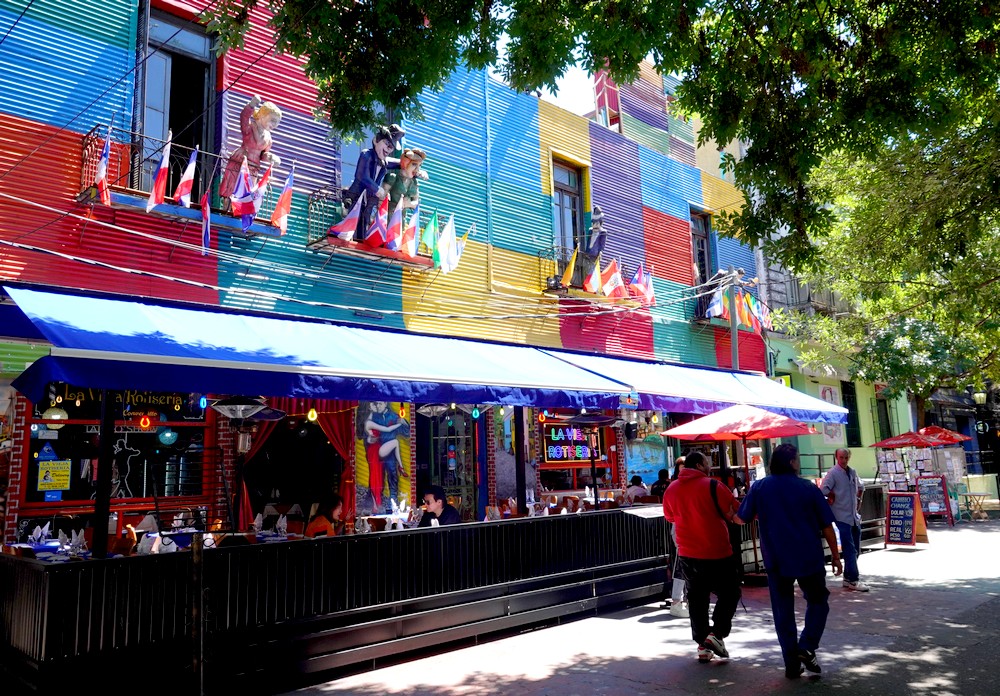 D’un coup de Uber, nous rejoignons ensuite le quartier de la Boca – la bouche – ainsi nommé car il se trouve autour de l’une des embouchures du Riachuelo. Historiquement, il abritait de nombreux habitants originaires d’Italie ; en 1882, à la suite d’une longue grève générale, une rébellion proclama une sécession de la Boca vis-à-vis de l’Argentine, et dressa le drapeau génois. Une révolte rapidement réprimée par le gouvernement argentin… C’est également un quartier où se concentraient des courants politiques de gauche, ses habitants ayant élu en 1935 le premier membre du Congrès argentin socialiste, Alfredo Palacios. Aujourd’hui, La Boca est éminemment touristique – principalement à cause de ses maisons colorées et de son ambiance – mais en choisissant d’y aller en fin de matinée, en semaine, la visite reste supportable !