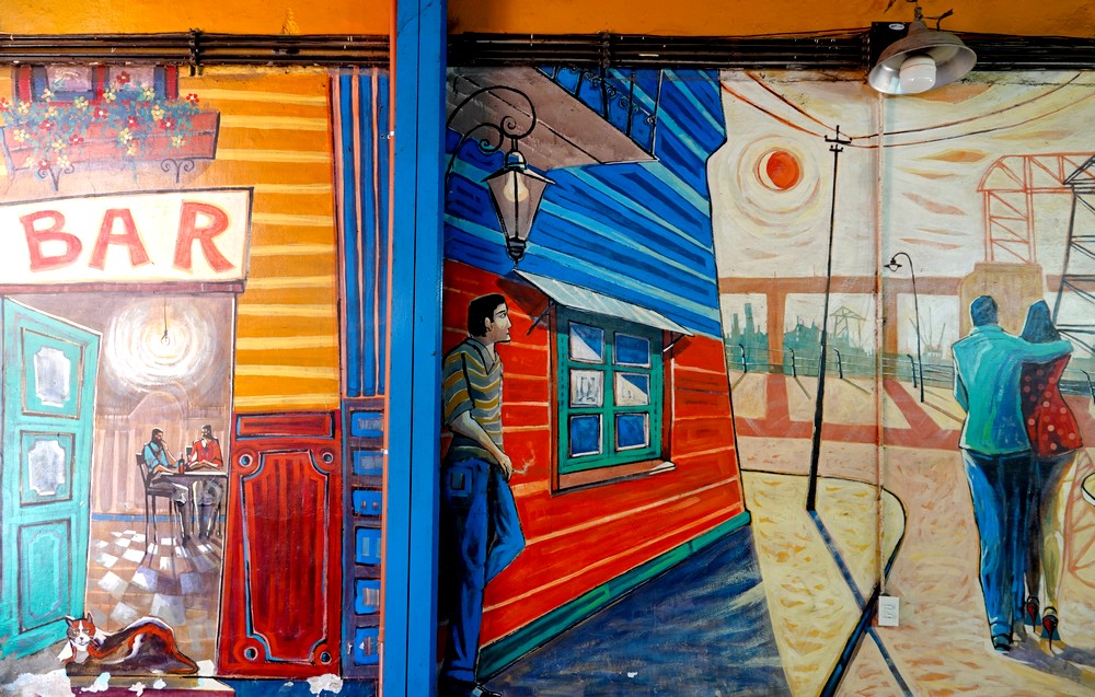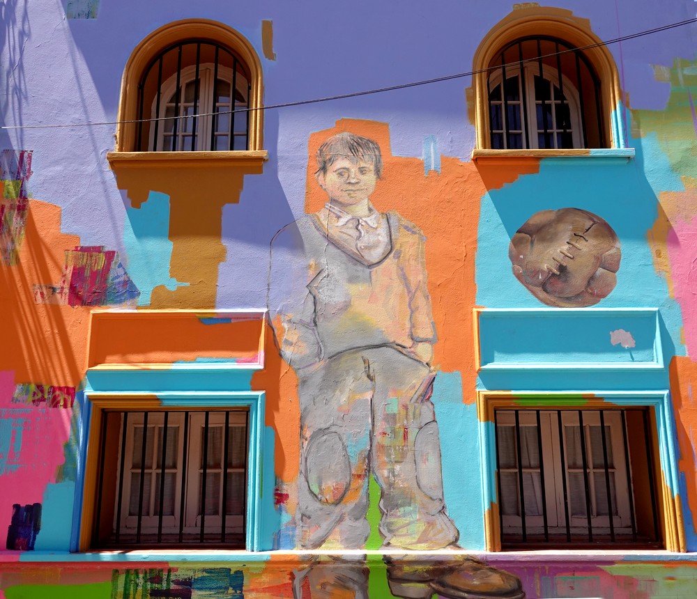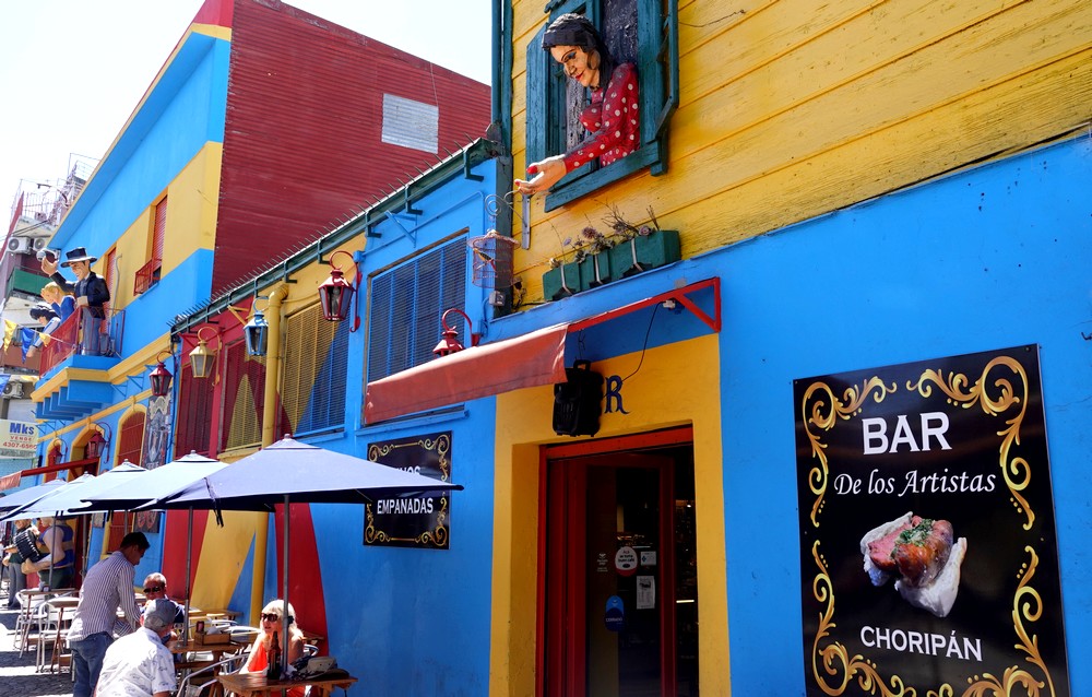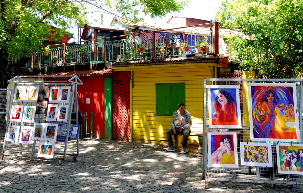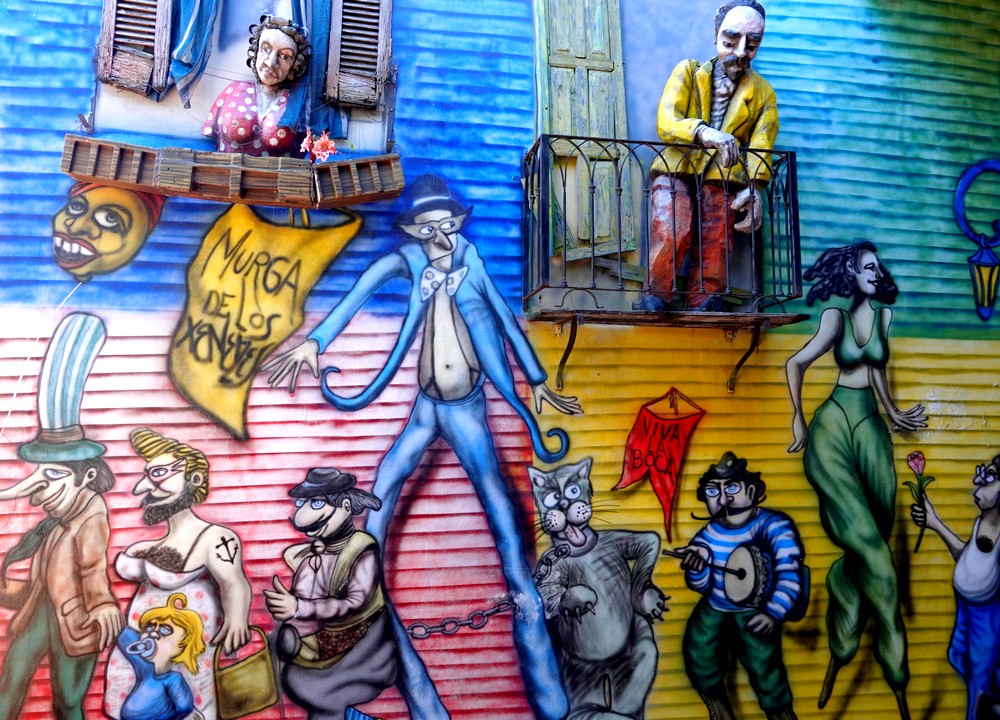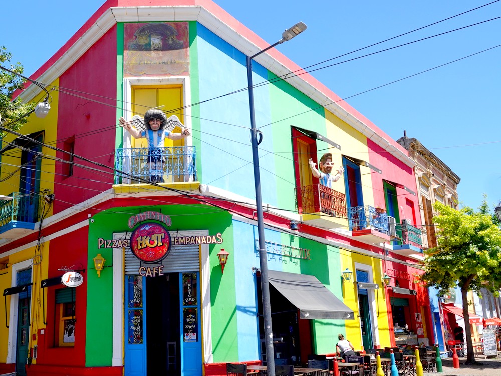 D’un coup de Uber, nous rejoignons ensuite le quartier de la Boca – la bouche – ainsi nommé car il se trouve autour de l’une des embouchures du Riachuelo. Historiquement, il abritait de nombreux habitants originaires d’Italie ; en 1882, à la suite d’une longue grève générale, une rébellion proclama une sécession de la Boca vis-à-vis de l’Argentine, et dressa le drapeau génois. Une révolte rapidement réprimée par le gouvernement argentin… C’est également un quartier où se concentraient des courants politiques de gauche, ses habitants ayant élu en 1935 le premier membre du Congrès argentin socialiste, Alfredo Palacios. Aujourd’hui, La Boca est éminemment touristique – principalement à cause de ses maisons colorées et de son ambiance – mais en choisissant d’y aller en fin de matinée, en semaine, la visite reste supportable !