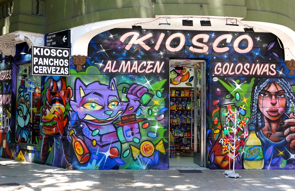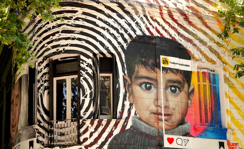 Après ce bain de couleur, toujours en Uber, nous mettons le cap sur Palermo Viejo, un quartier que nous avions particulièrement apprécié pour ses nombreux murs peints. Sitôt débarqués pourtant, nous constatons qu’il y en a nettement moins qu’auparavant. Petite déception… Nous nous baladons tout de même un long moment dans les rues ombragées, c’est calme, cela change de l’animation touristique de la Boca !