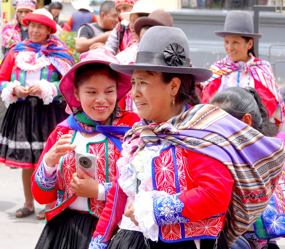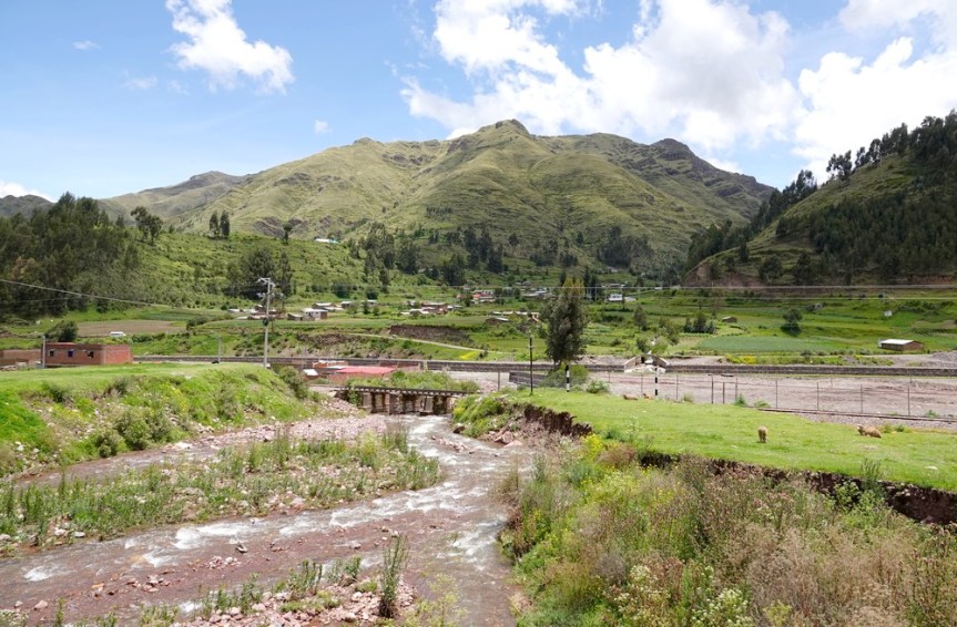 Nous reprenons la route et traversons des paysages arides, froids et austères : nous sommes encore dans le bassin versant du lac Titicaca. La seconde étape du voyage se fait à La Raya, à 4300m d’altitude. Ce col marque aussi la ligne de partage des eaux entre Puno et Cusco : passé ce cap, nous basculons sur le bassin versant de l’Amazone, la végétation est beaucoup plus verdoyante et nous gagnons une bonne dizaine de degrés. Conséquence : la vallée est bien plus urbanisée car moins hostile.