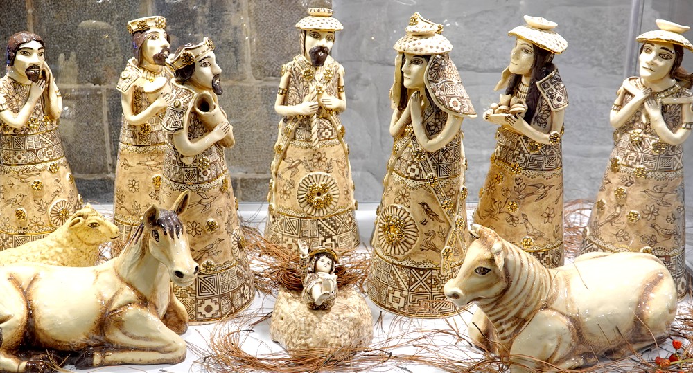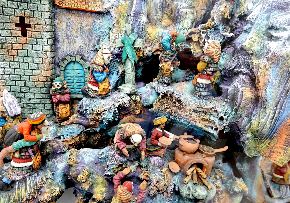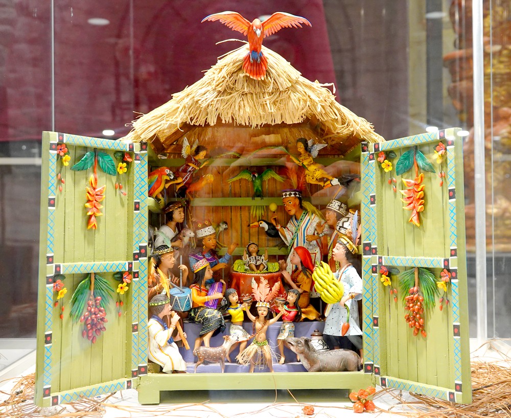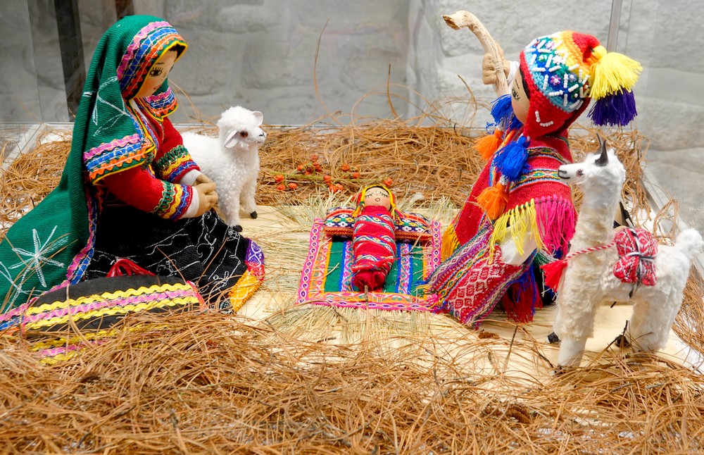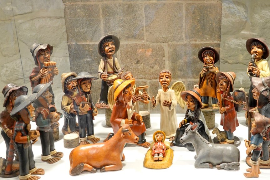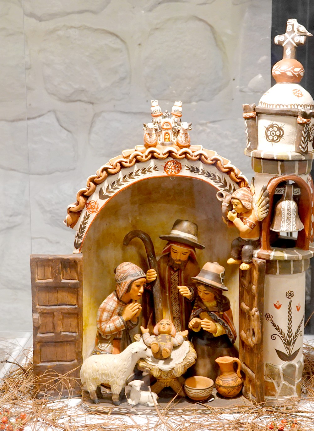 A la sortie de l’église, nous tombons sur une petite expo de crèches andines créées par des artistes péruviens. Des réalisations originales !