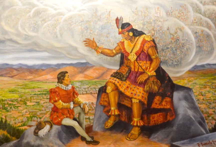 Nous poursuivons notre découverte de la ville par la visite de deux musées inclus dans le boleto : le Museo de Arte Contemporáneo et le Museo Histórico Regional de Cusco. Si le premier n’expose quasiment aucune œuvre – un comble pour un musée d’Art – le second, en revanche, est très intéressant et nous passons une petite heure à déambuler dans les différentes salles. Ici, l’histoire de Cusco est retracée depuis son origine, à une époque où les glyptodons – sorte de tatous géants – peuplaient les lieux. Apparus il y a 30 millions d’années, ces animaux disparurent il y a environ 11.000 ans, après l’arrivée de l’homme sur le continent américain. Les autres salles du musée exposent de beaux objets pré-incas et incas, dont certains sont dans un exceptionnel état de conservation – comme ces cuillères et ces petites assiettes, objets qui, par nature, se cassent facilement. Mais ce qui nous a le plus marqués est la salle consacrée à l’Inca Garcilaso de la Vega, né le 12 avril 1539 à Cuzco, métis de père espagnol et de mère inca – son grand-père était le roi Topa Hualpa et son arrière-grand-père, l’Inca Huayna Capac. Après avoir passé les vingt premières années de sa vie au Pérou, Garcilaso de la Vega s’installa en Espagne pour terminer ses études. Il devint par la suite chroniqueur de l’histoire inca, et fut ainsi le premier grand écrivain péruvien. Un destin hors du commun !