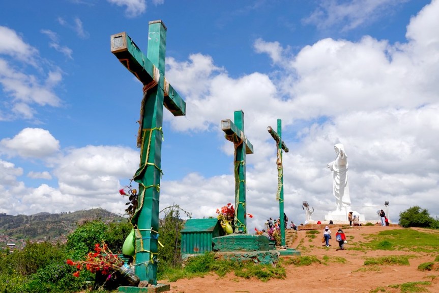 Plutôt que de prendre un collectivo ou un taxi, c’est à pied que nous rejoignons le centre de Cusco, via le Cristo Blanco qui domine la ville de sa hauteur. Accessoirement, c’est aussi un magnifique point de vue, peut-être le plus beau des environs !