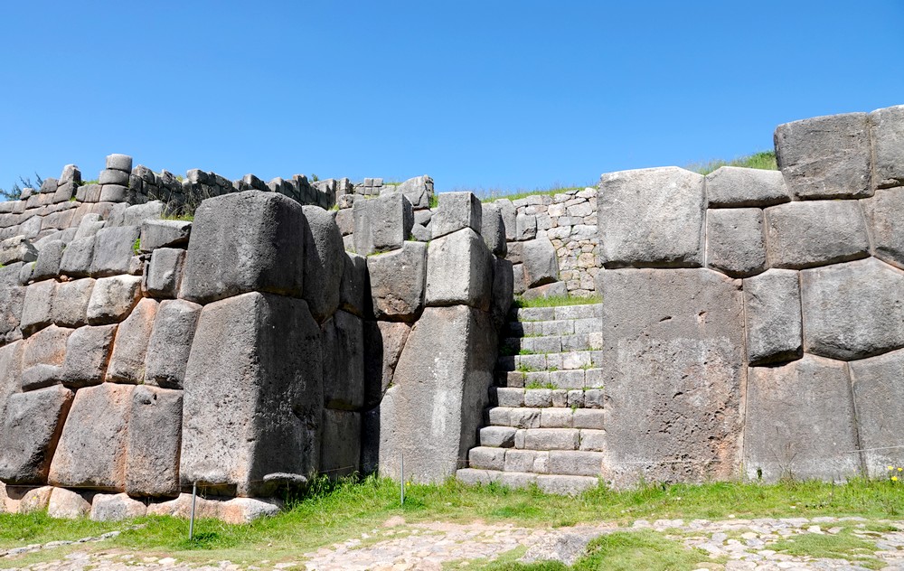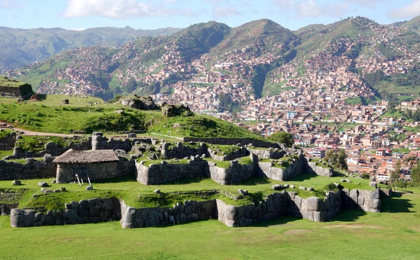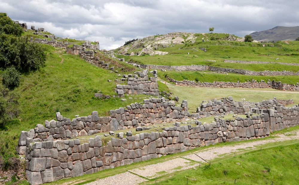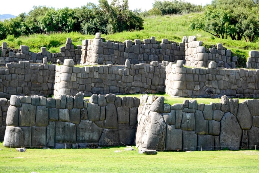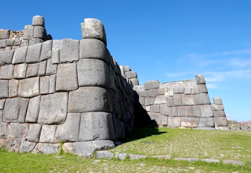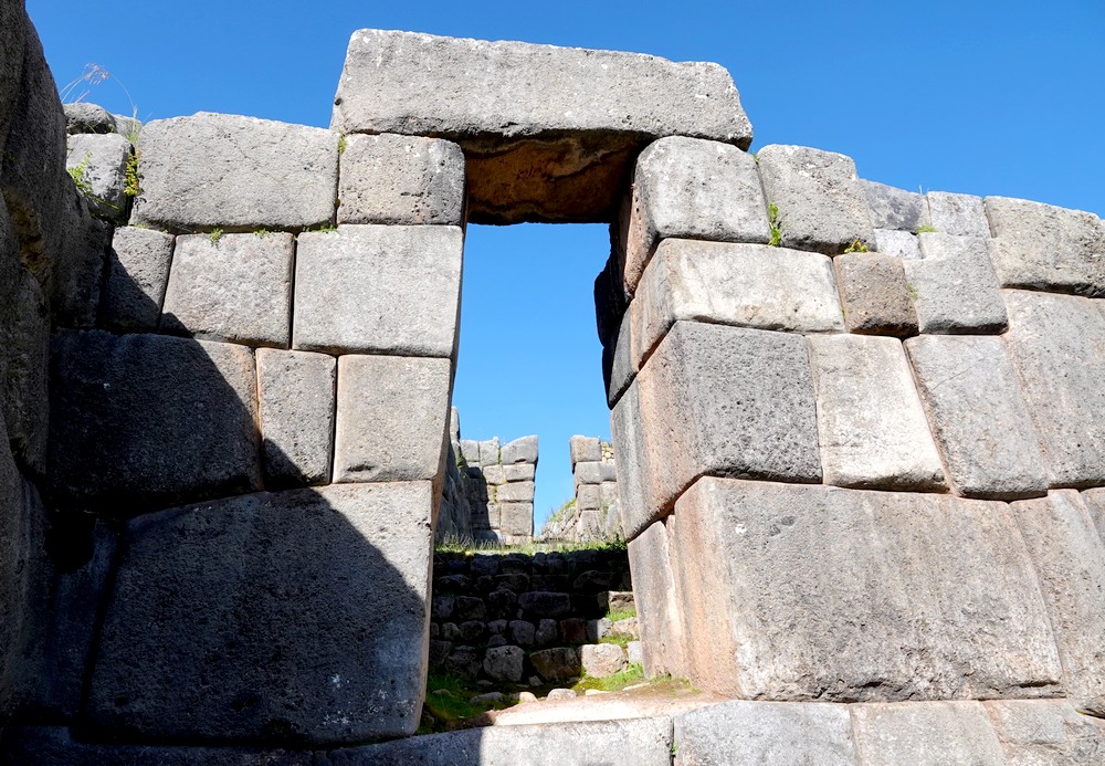 L’immense complexe architectural fut érigé à l’initiative de l’inca Pachacutec, au XVe siècle, poursuivi sous le règne de Tupac Yupanqui et peut-être achevé sous celui de Huayna Capac. La citadelle est composée de trois murs longs de 600m, disposés en zigzag, lesquels sont constitués de blocs monolithiques de calcaire parfaitement assemblés et encastrés les uns dans les autres, chacun ayant un poids allant de 128 à 200 tonnes. Les enceintes sont reliées par des escaliers et des portes trapézoïdales – une forme chère aux Incas. Pour construire cette citadelle, on imagine que 20.000 hommes – une main d’œuvre forcée – ont travaillé quotidiennement pendant 50 ans – mais en l’absence de documentation, il s’agit juste d’une hypothèse. A l’époque inca, il y avait trois tours, hautes de quatre ou cinq étages, toutes détruites par les Espagnols : la tour ronde de Muyuqmarka abritait l’Inca et sa cour pendant les périodes de méditation et de jeûne ; celle de Paucamarca avait une fonction religieuse et était vouée au culte du Soleil, et d’après la légende, elle était reliée au temple du Soleil, à Cusco, par un réseau de galeries souterraines. Quant à la dernière, celle de Suyaqmarka, elle était réservée à la garnison et abritait des dépôts de nourriture, d’armes et de vêtements.