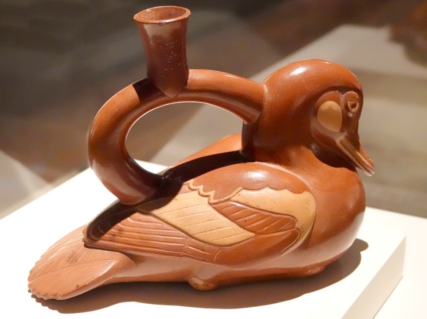 Après le déjeuner, nous continuons à descendre la Calle Pumacurco pour arriver sur la jolie Plazoleta de las Nazarenas, bordée d’hôtels de luxe. Installé dans un ancien palais inca – qui aurait accueilli une école pour les enfants de la noblesse – reconstruit dans un style colonial en 1580, nous visitons le Museo de Arte Precolombino qui expose de superbes artéfacts et œuvres d’art précolombiens, issus de toutes les régions du pays. A travers 10 salles à la muséographie particulièrement bien soignée, nous découvrons poteries, céramiques, bijoux et objets en or, créés sur une période allant de 1250 avant JC à 1532 après JC. Magnifique !