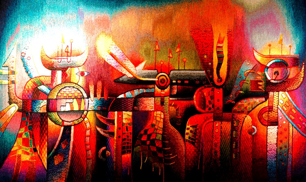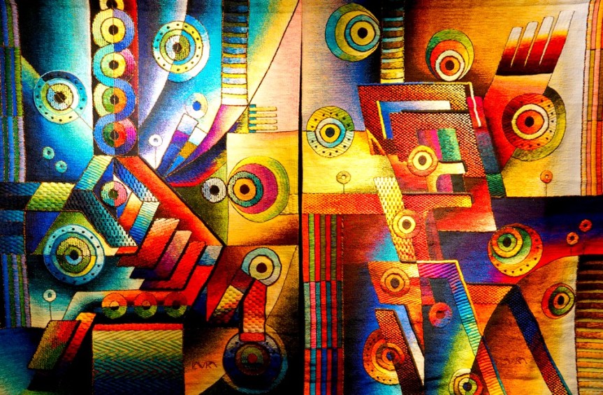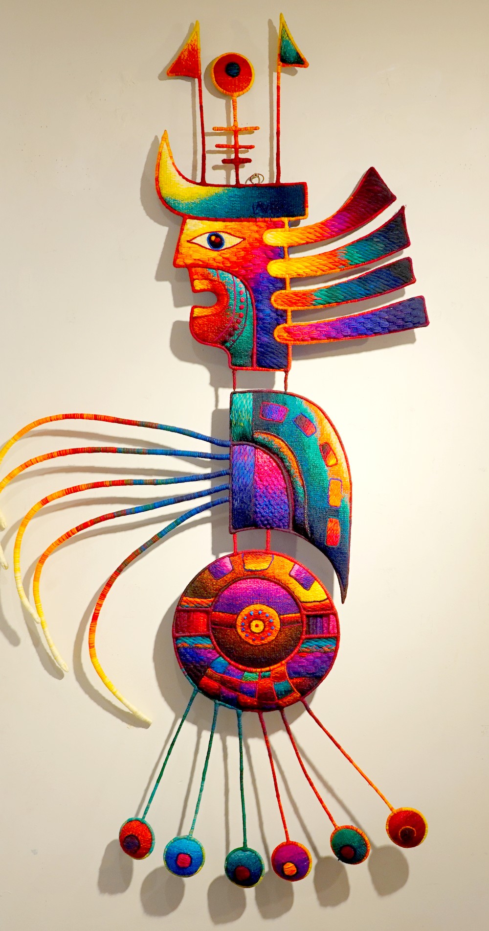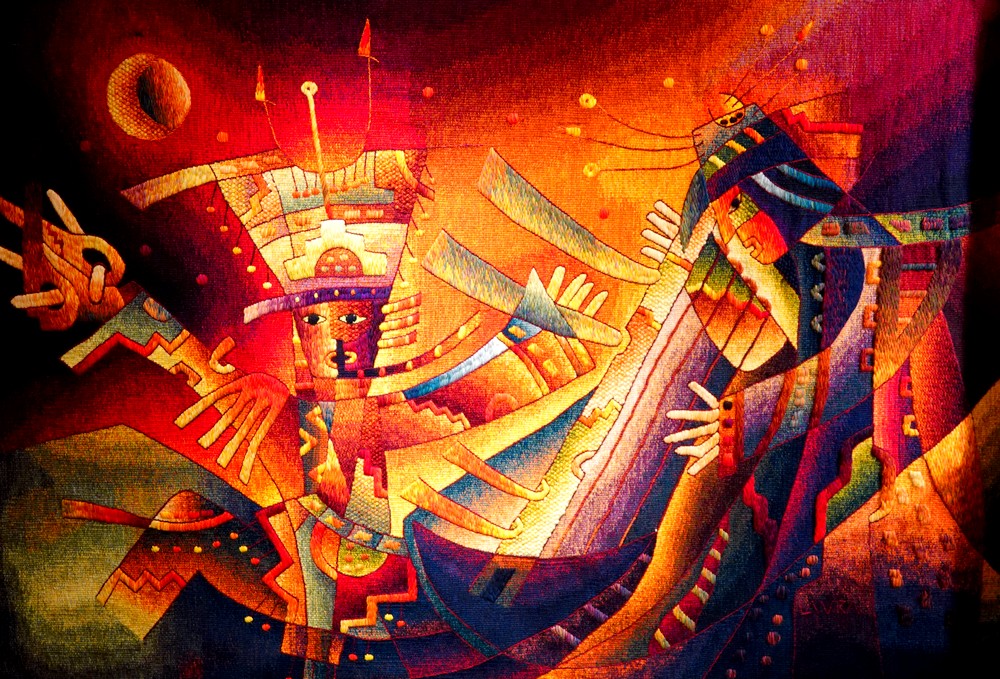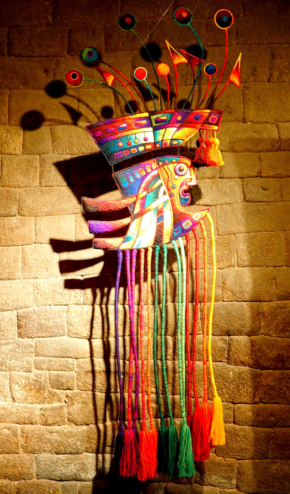 Samedi matin, grosse pluie ! Nous en profitons pour visiter le musée consacré à Maximo Laura, un artiste né à Ayacucho, issu d’une famille de créateurs de tapis. Après ses études universitaires en lettres, il dédie sa vie à cet art en l’étudiant, en le faisant évoluer et en le transmettant. Ses tapisseries sont inspirées des cultures précolombiennes riches en mythes, symboles et couleurs. Une merveille … et un nouveau coup de cœur pour nous !