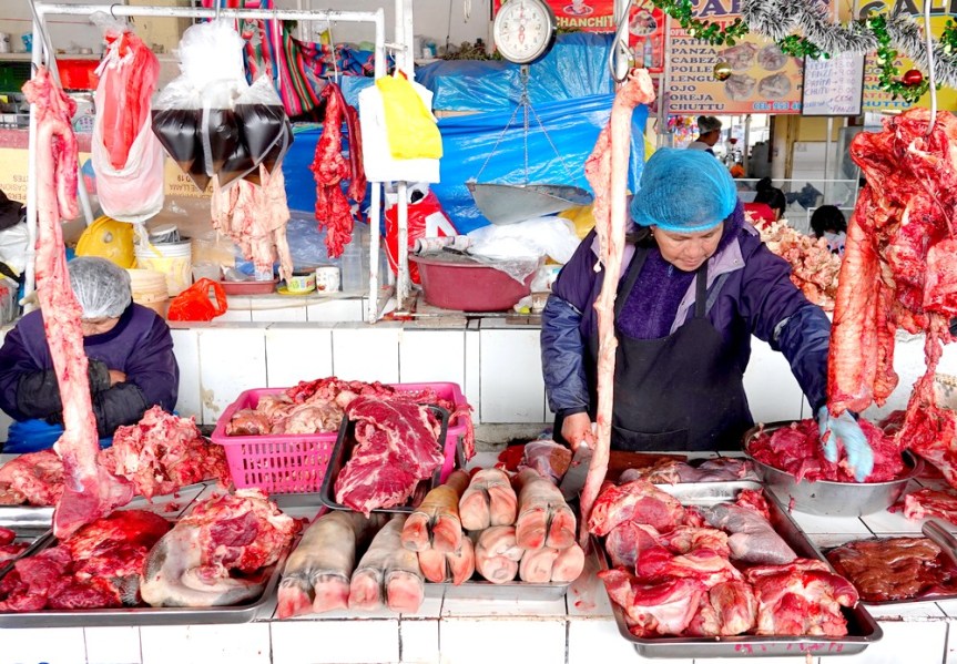 La pluie s’étant un peu calmée, nous en profitons pour faire un tour dans le quartier San Francisco – très agréable, avec sa place occupée par des échoppes d’artisans. Au mercado San Pedro tout proche, nous nous baladons entre les étals que, dans un premier temps, nous trouvons très proprets… avant de découvrir la partie consacrée à la boucherie où là, même le carnivore le plus convaincu, se convertirait rapidement au régime vegan ! Impressionnant et peu ragoutant, âmes sensibles s’abstenir…