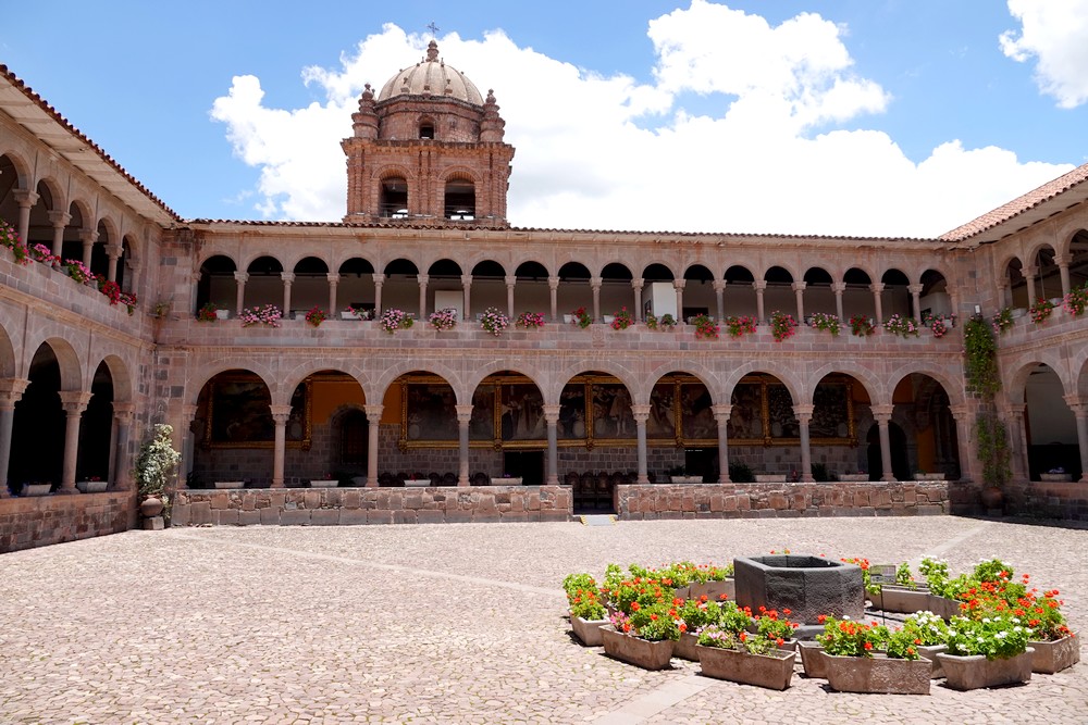Nous redescendons de Sacsayhuamán par une belle voie pavée, et dans la foulée, nous rejoignons le site de Qoricancha, ancien Temple du Soleil inca. Erigé au centre de Cusco, c’était le lieu le plus sacré de l’empire des Incas. Ce temple accueillait les cérémonies importantes des souverains Incas comme les mariages, les sacres ou encore les funérailles. C’est aussi là que leurs momies étaient conservées, assises sur des trônes en or. Au moment de l’invasion, les chroniqueurs espagnols ont abondamment décrit ses richesses fabuleuses, avant qu’elles ne soient fondues ou éparpillées… Quelques temps après, ce splendide temple fut rasé et pillé de fond en comble. Les plaques d’or couvrant les murs furent arrachées et les momies des anciens Incas profanées. Il ne resta debout que les fondations qui, peu après, servirent d’assise à la construction de l’église et du couvent Santo Domingo.