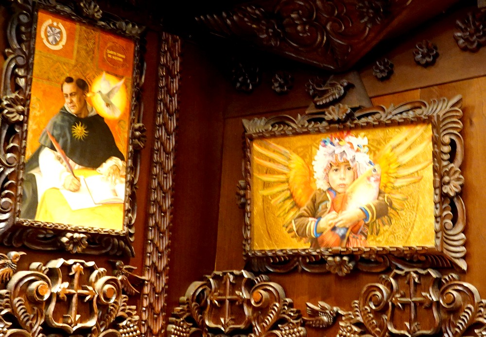 Comme il pleut toujours, nous poursuivons notre tournée des musées ! Nous visitons donc le musée d’Art populaire inclus dans le boleto. Grosse déception car la salle qui lui est consacrée est très poussiéreuse, et les œuvres qui dépeignent des scènes de la vie quotidienne et religieuse sont amassées les unes sur les autres. Pas évident d’observer les mille et uns détails de ces pièces qui pourraient être passionnantes si elles étaient mieux mises en valeur… Et les explications sont rares !