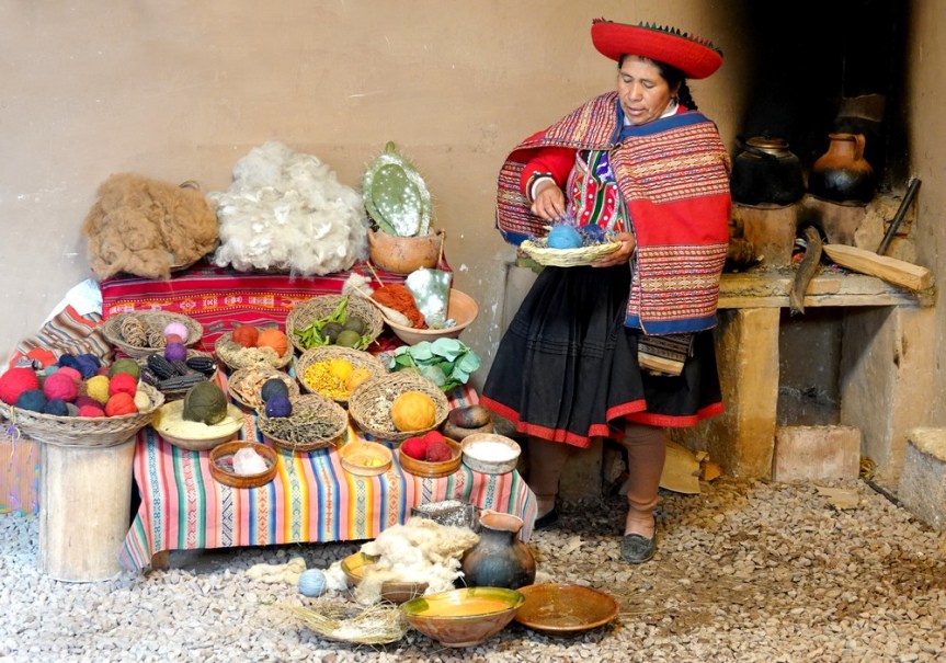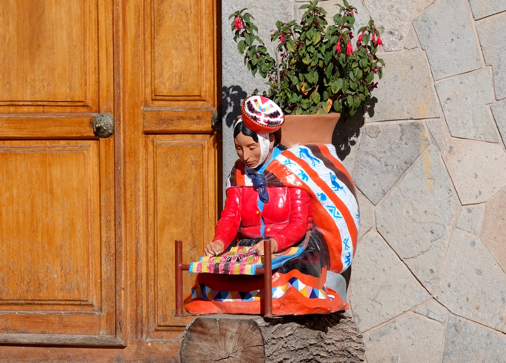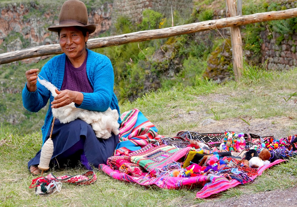 Le guide nous a ensuite emmenés dans un atelier de tissage – visite obligée de toute excursion, avec pour objectif de nous faire sortir le porte-monnaie. Néanmoins, il faut reconnaitre que le cadre de cet atelier était charmant, et les explications concernant la transformation et la teinture de la laine d’alpaga très intéressantes.